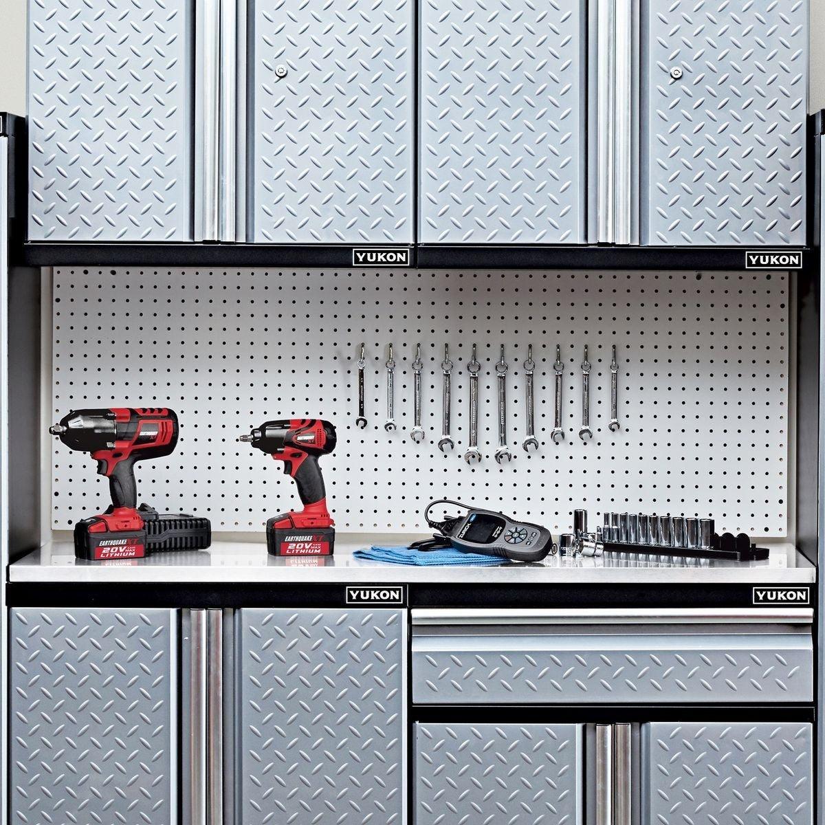 • Easily bolts to the top of two Yukon 27 in. garage cabinets