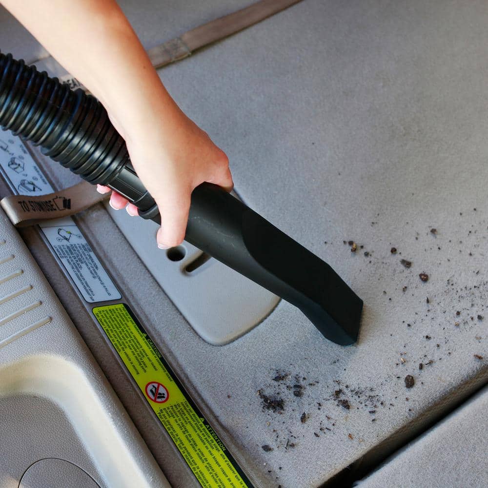 Ergonomic car-cleaning nozzle for RIDGID wet/dry vacs with 1-7/8 in. hoses. Designed to deep clean upholstery, carpet, and hard-to-reach areas, with a durable ridged edge to scrape dried debris. Its 8.88 in. length offers extended reach for easy interior detailing.