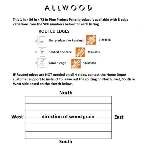 1 in. x 36 in. x 72 in. Allwood Pine Project Panel Table Island Top with Classic Roman Edges
