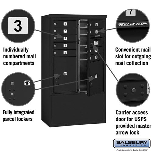 10-Door Free-Standing Mailbox with Parcel Lockers in Black