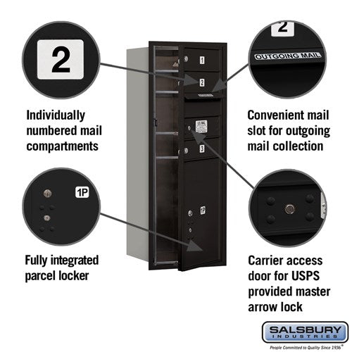 This 10-door recessed mounted mailbox is designed for private access and front loading, featuring durable aluminum construction and a secure parcel locker. Ideal for various applications, it combines functionality with a sleek black powder-coated finish.