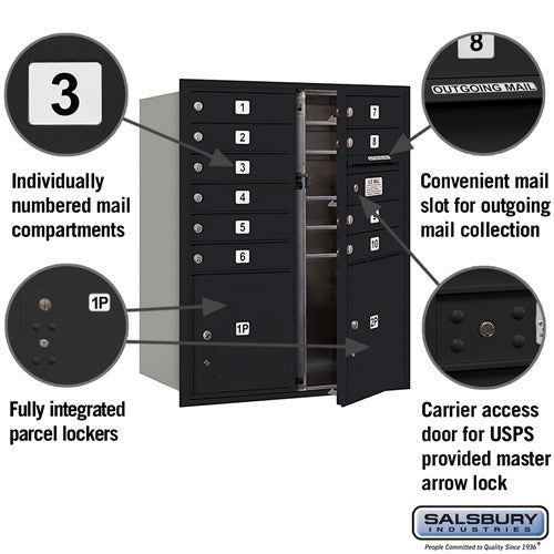 10 Door High Recessed Mounted 4C Horizontal Mailbox with Parcel Lockers - Black