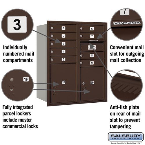 10 Door High Bronze Mailbox with Parcel Lockers
