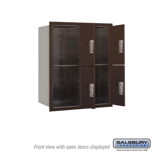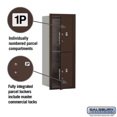 This 10-door recessed mounted parcel locker offers secure private access with a durable bronze finish. Constructed from heavy-duty aluminum and stainless steel, it is ideal for indoor or outdoor use in schools, corporate mail centers, and more.
