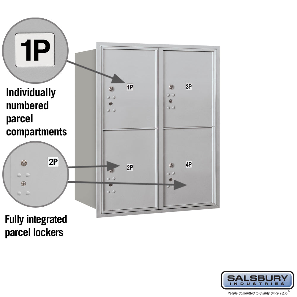 This recessed-mounted parcel locker features 10 tenant compartments and 4 parcel lockers, designed for USPS access and rear loading. Constructed with heavy-duty aluminum and stainless steel hardware, it is ideal for residential and commercial use.