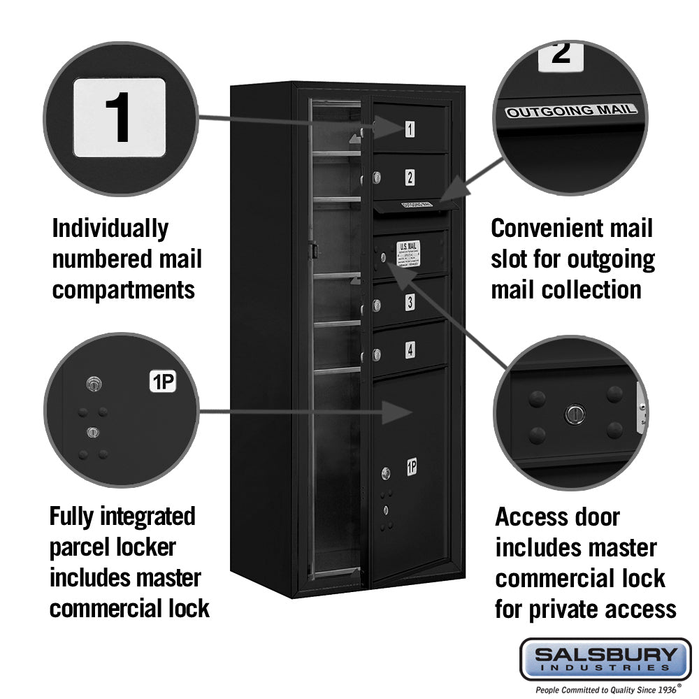 10-Door High Surface Mounted 4C Horizontal Mailbox with Parcel Locker in Black