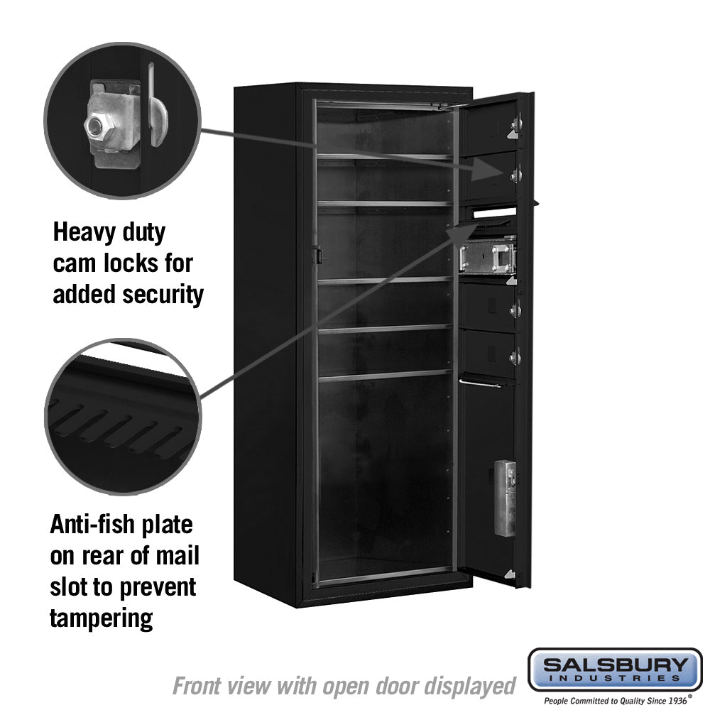 This surface-mounted mailbox unit combines robust functionality with sleek design, making it a perfect addition to any modern space. Its durable black powder-coated finish and heavy-duty construction ensure longevity while adding a touch of sophistication. The integrated parcel locker and secure locking mechanisms provide peace of mind and convenience. Place it in a corporate mail center or a private postal area to enhance both utility and aesthetic appeal.