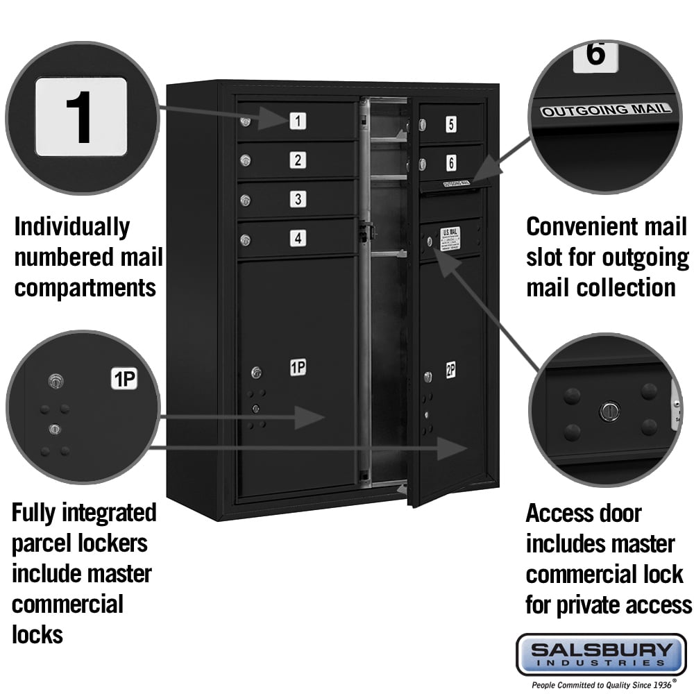 This surface-mounted mailbox unit combines robust functionality with sleek design, making it a perfect addition to modern spaces. Its durable black powder-coated finish and heavy-duty aluminum construction ensure longevity while exuding sophistication. The integrated parcel lockers provide secure storage for packages, enhancing convenience. Place it in a corporate mail center or private postal area to create a streamlined and professional environment.
