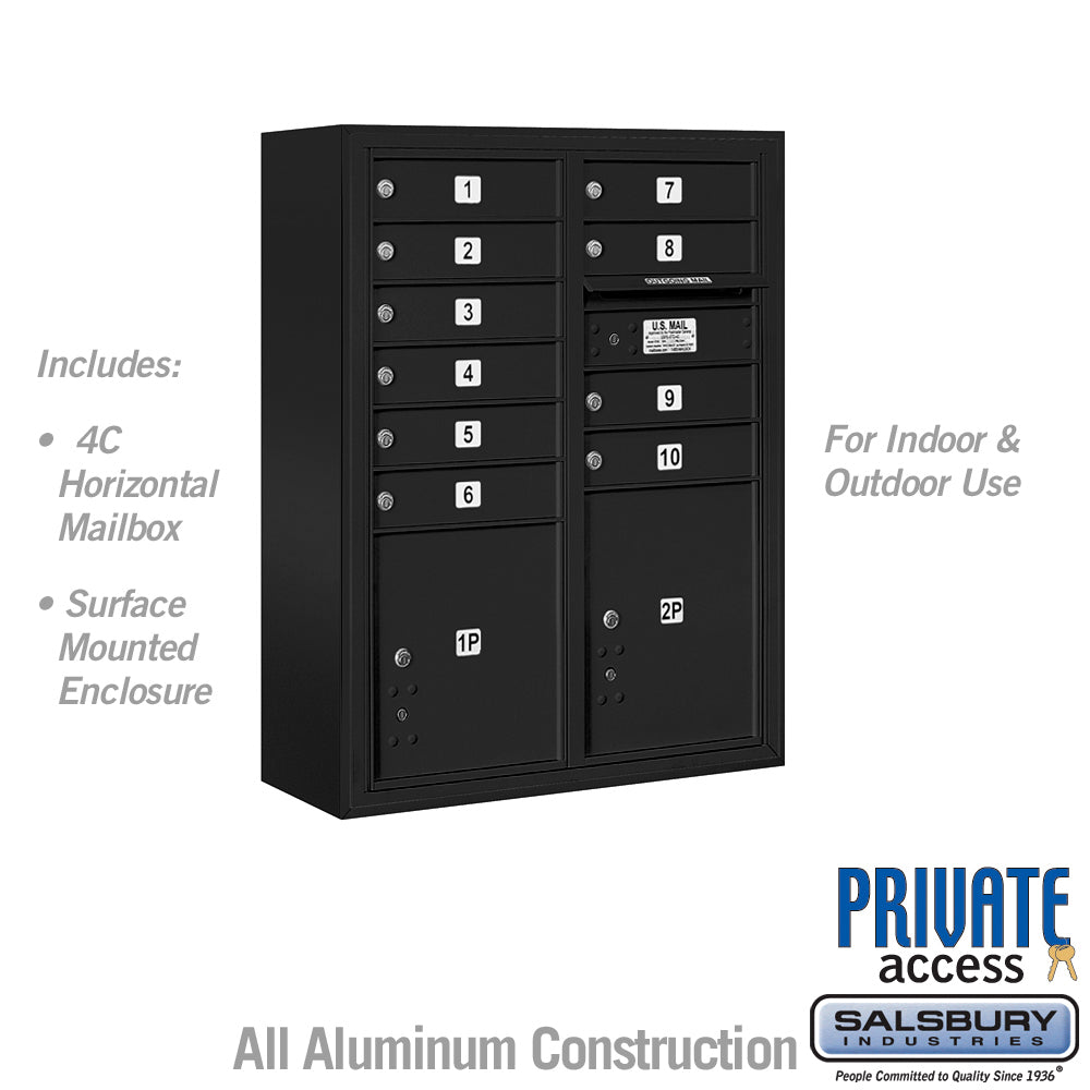 10 Door High Surface Mounted 4C Horizontal Mailbox with Parcel Lockers in Black