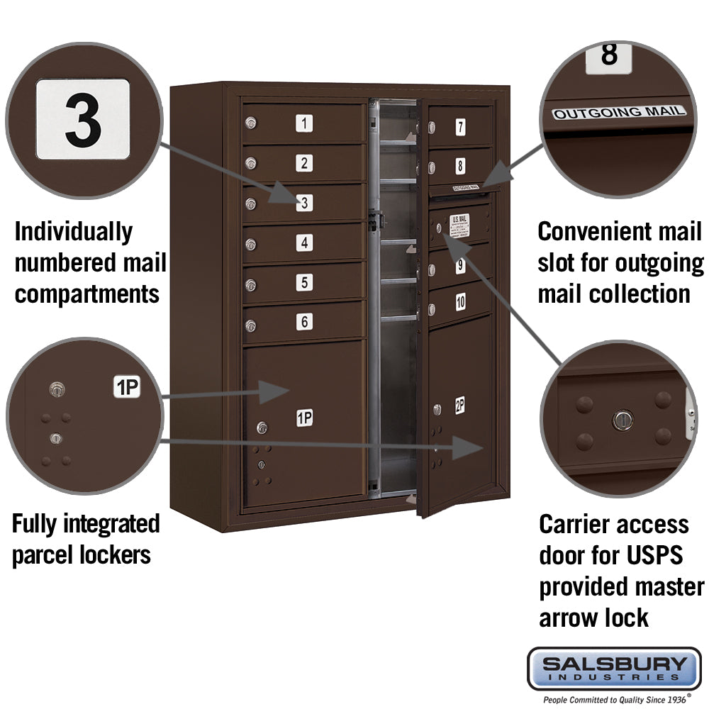 10-Door High Surface Mounted 4C Horizontal Mailbox with Parcel Lockers in Bronze