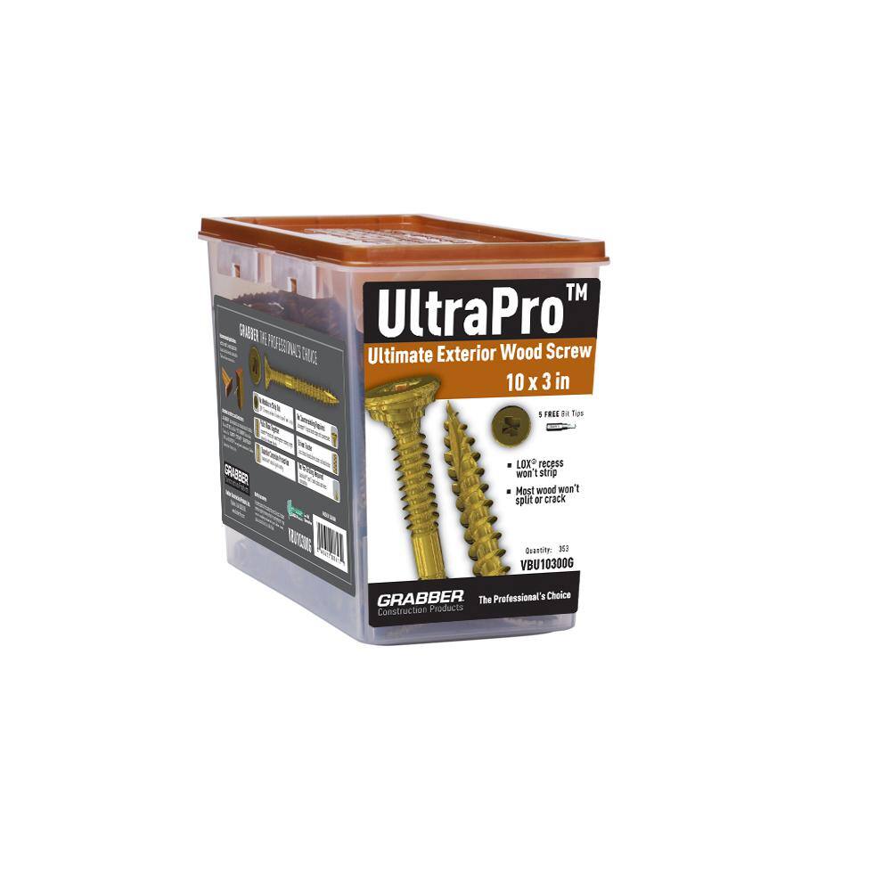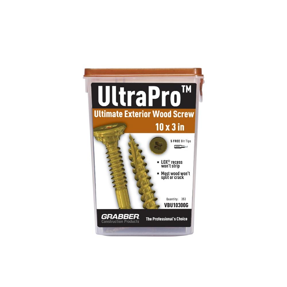 #10 x 3 in. UltraPro LOX 2 Drive, Flat Scavenger II Head, GrabberGard Gold, Exterior Wood Screws (5 lb. box)