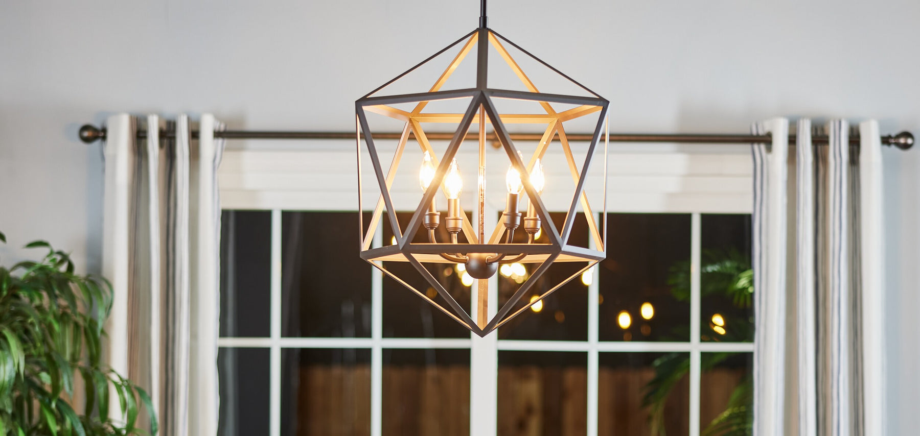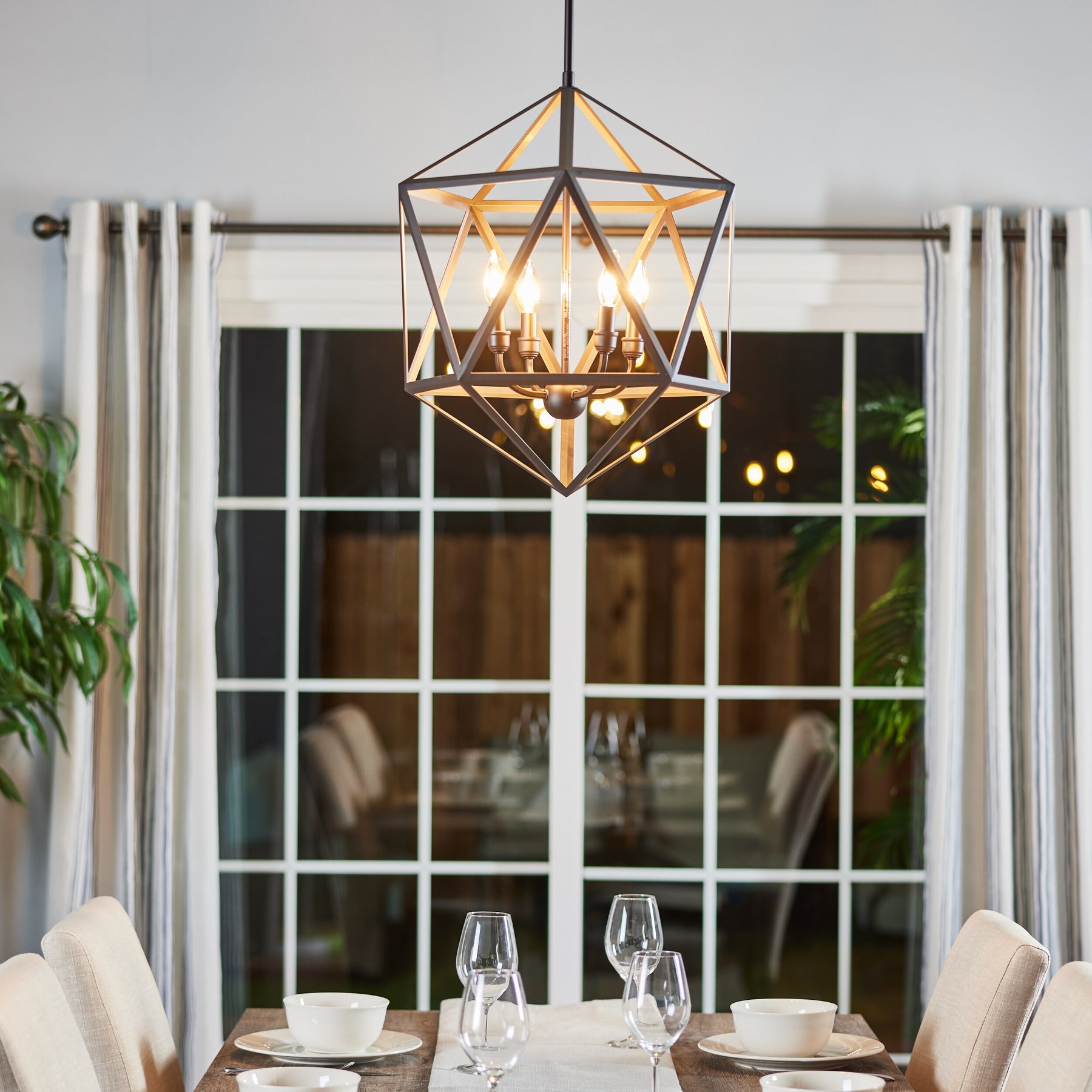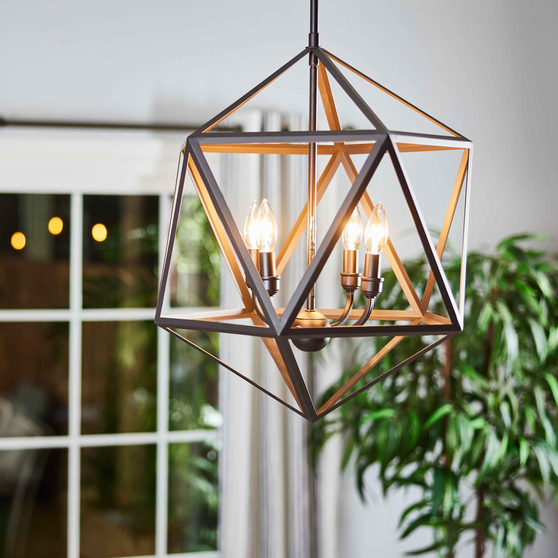 Liberty Park turns light into architecture—the bronze frame sketches a dramatic polygon that floats effortlessly in the room. Its openwork geometry reveals a quartet of candelabra lights, casting a warm, elegant radiance. Style it above a rustic wood table or sleek marble island to create a magnetic focal point. A modern essential that elevates everyday living with refined edge.