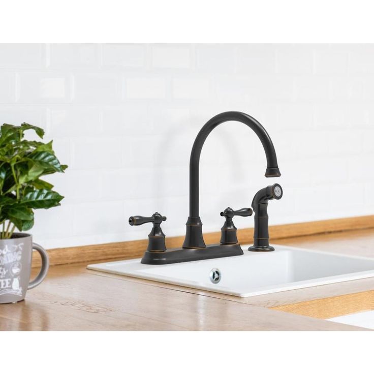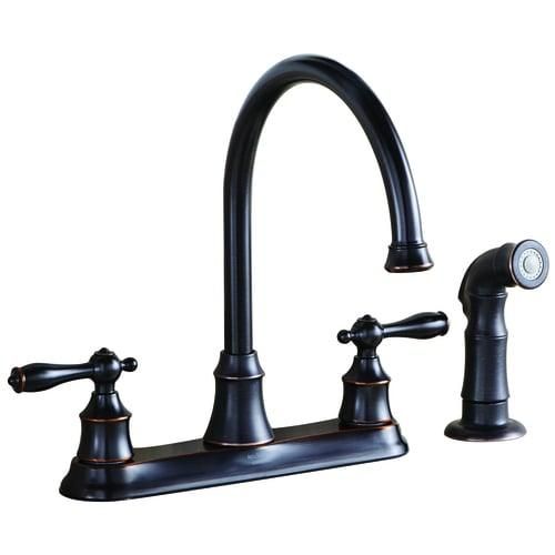 AquaSource Oil Rubbed Bronze 2-Handle Deck Mount High-Arc Handle Kitchen Faucet (Deck Plate Included)