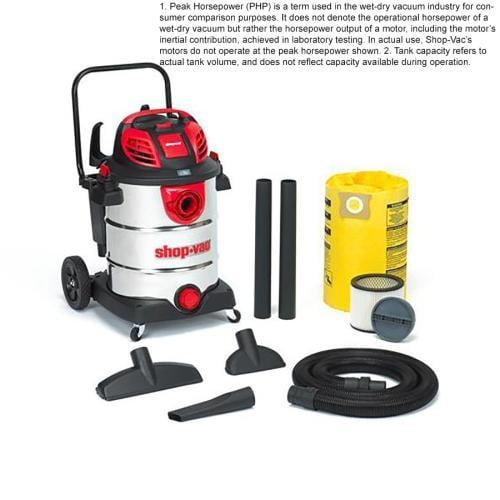 16-gallon, 6.5-HP shop vacuum is ideal for cleaning heavy-duty wet or dry messes on the jobsite or in the workshop High-efficiency bag and cartridge collection filter maintains suction even when picking up fine debris 20-ft power cord and 8-ft hose allow for extended reach 2.5-in diameter hose is great for vacuuming wood chips, shavings and general workshop pickup On-board storage for cord, hose and accessories keeps everything organized Tank drain eliminates the need to tip over and pour out liquid messes Carry handles and casters provide easy portability 5-year limited warranty gives you peace of mind SVX2 motor technology delivers more power and longer life