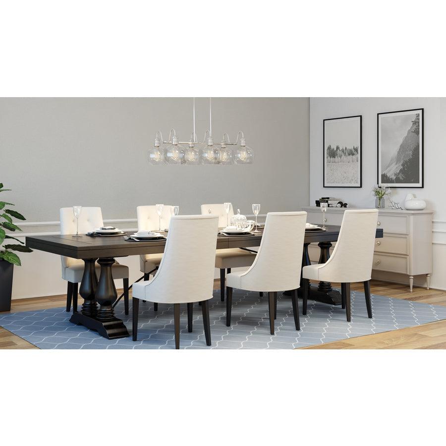Soho’s brushed nickel frame and luminous clear globes create a refined rhythm above an island or dining table. The mouth-blown glass showcases sculptural filament bulbs, turning light into jewelry for the room. Style it with warm vintage lamps and layered metallic accents to amplify its sleek linear profile. It’s an effortless essential for elevating everyday gatherings into luxurious moments.