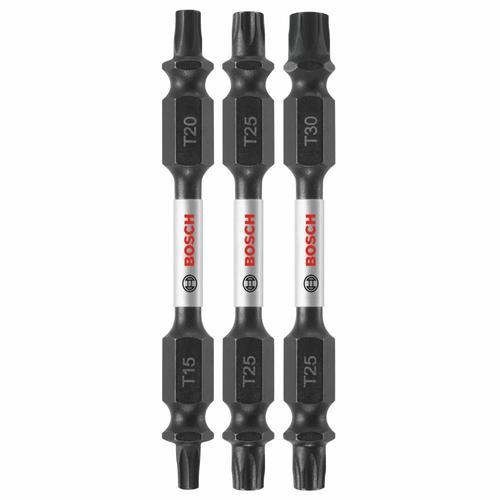 10X life over standard impact bits Xtended Torsion Zone helps to absorb high-torque of new impact drivers Precision-engineered tips for a tighter fit and less cam out Heat-treated manufacturing for stronger bit High-visibility sleeve with laser-etched markings for user convenience Double-ended bits provide great value and extra life by having 2 tips 2-1/2 In. Torx® double-ended bit set