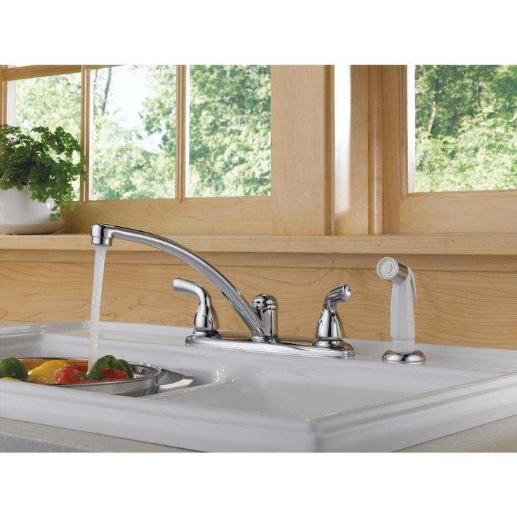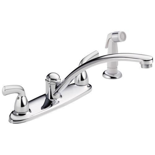 Delta Foundations Chrome 2-Handle Deck-Mount Low-Arc Handle Kitchen Faucet (Deck Plate Included)