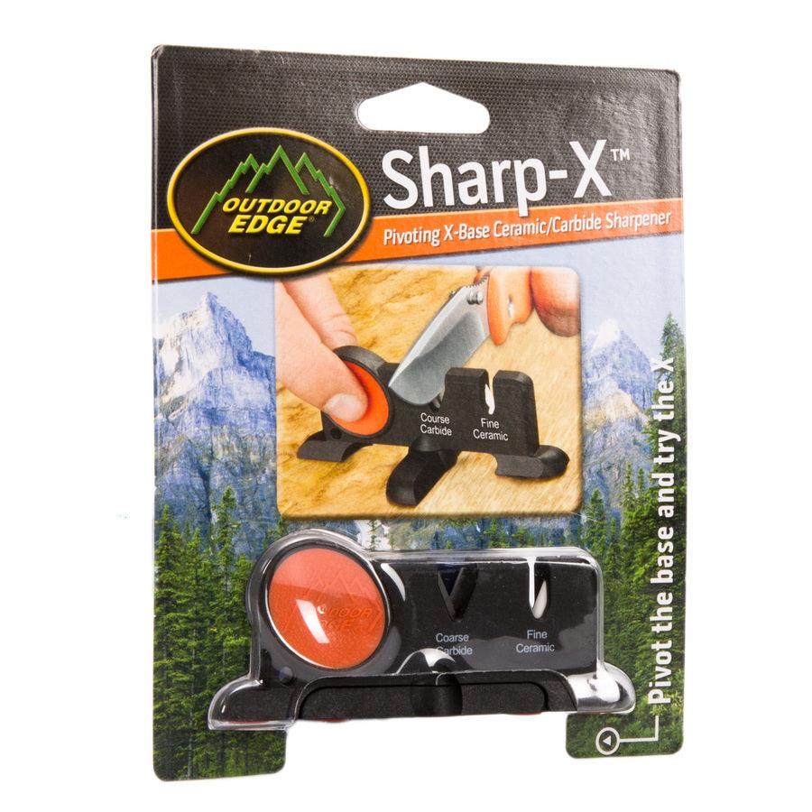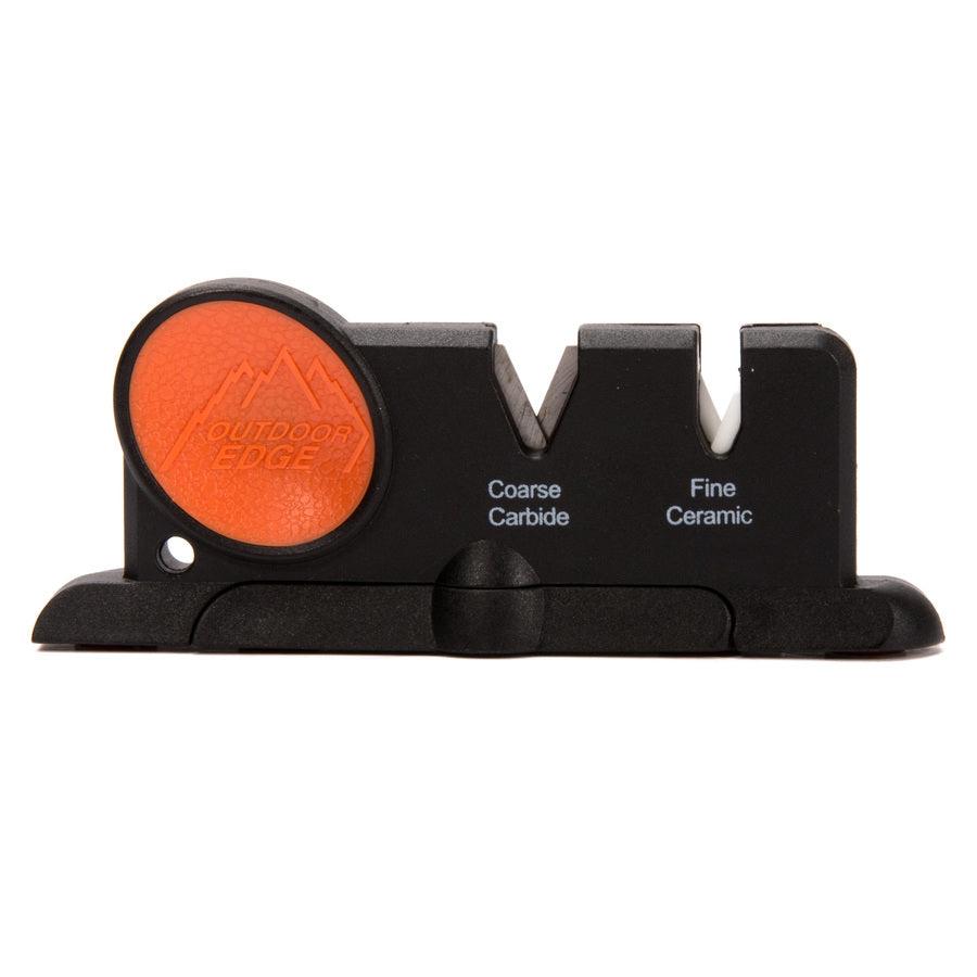 2 stage sharpener with coarse carbide for reshaping a knife blade and fine ceramic rods for finishing