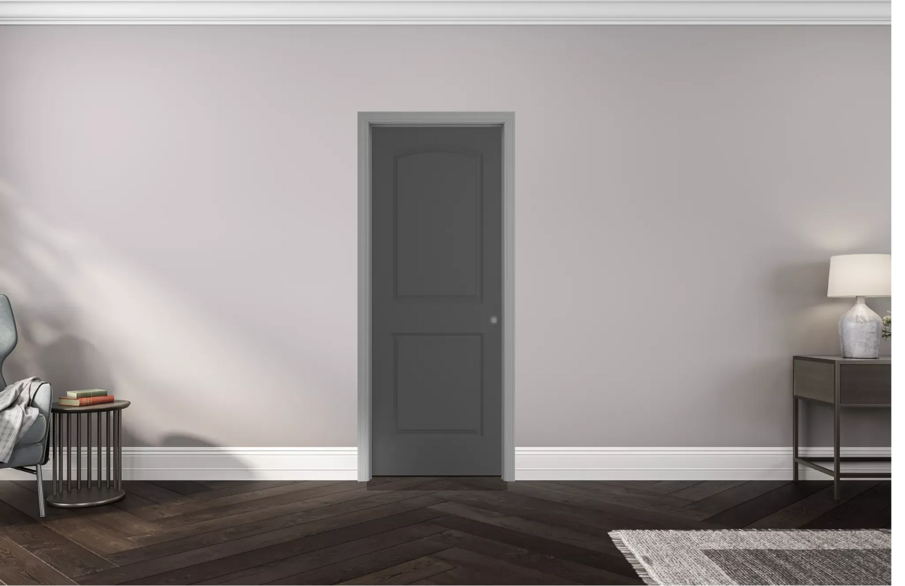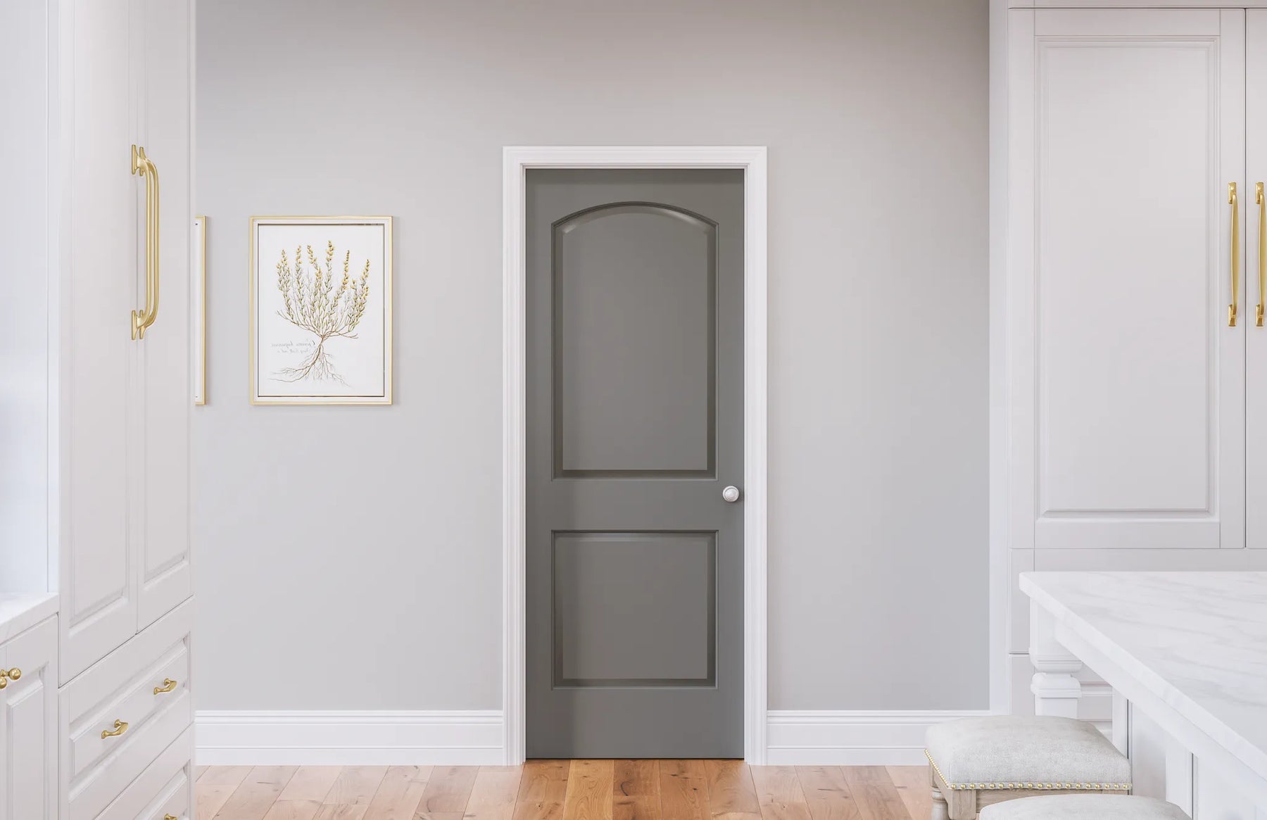 The Roman round-top silhouette introduces a graceful curve that softens any corridor or room. Its smooth molded panels feel tailored and timeless, pairing beautifully with crisp trim and layered neutrals. Paint it in a saturated hue to create a subtle focal point in a pantry or laundry, or keep it light for quiet sophistication. It’s a chic essential that brings polish and poise to everyday spaces.