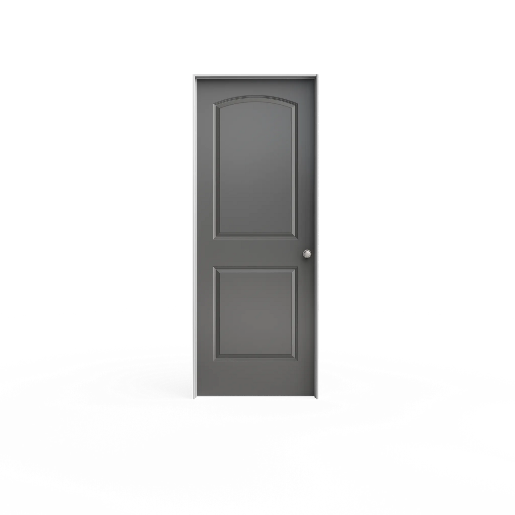 A classic 2-panel Roman round-top interior door, factory primed and molded from composite for smooth, consistent style. This right-hand inswing/outswing prehung unit offers easy installation and a durable hollow-core design ideal for bedrooms, closets, and pantries.
