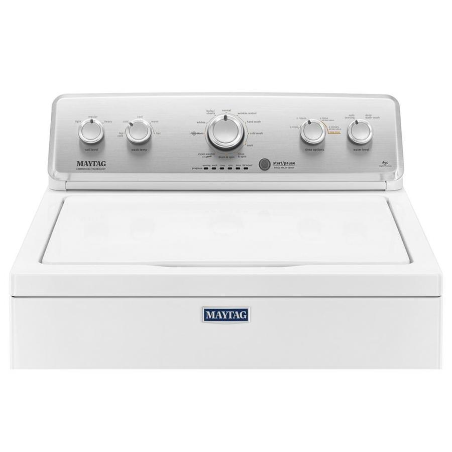 PowerWash® cycle features a combination of extra cleaning action and heated water PowerWash® agitator tackles any load size Add more water with the Deep Water Wash Option Fight everyday stubborn stains with the Auto Sensing option, which adjusts the water level for each load to provide efficient, concentrated cleaning Thoroughly clean clothes and rinse away excess detergent and fabric softener with the Deep Rinse option - four extra rinse options, both with or without fabric softener, ensure the ultimate clean for every load Maytag® Commercial Technology features high-performance, commercial-grade parts, including a 2X Life tested drive system and commercial springs built to last 10-Year Limited Parts Warranty On The Direct Drive Motor And Wash Basket - we confidently back our washers with a 10-year limited parts warranty on the direct drive motor and stainless steel wash basket American Pride - designed, engineered and assembled in the USA