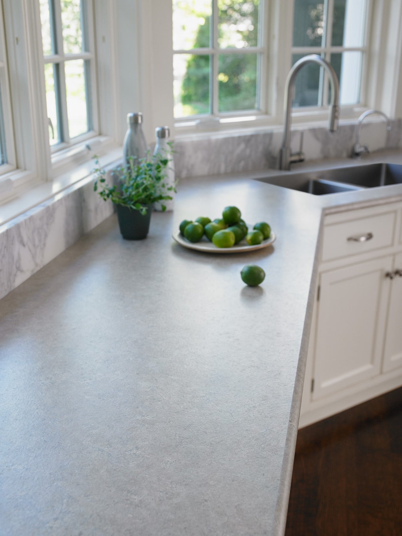 Upgrade countertops and cabinets with this Formica Brand Laminate sheet in Concrete Stone Matte. The 4-ft x 8-ft panel features EliteForm technology for enhanced scratch resistance and durability, ideal for horizontal or vertical applications throughout kitchens and baths.