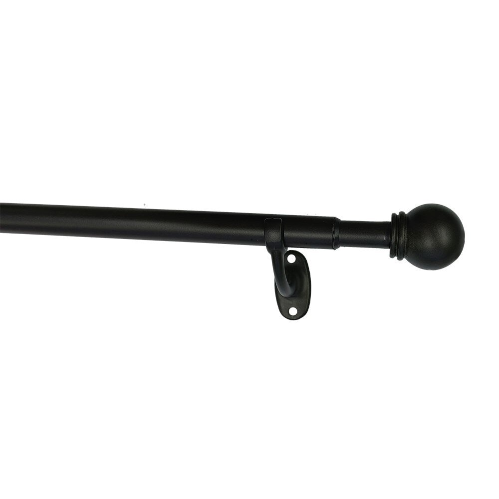 This adjustable bay window curtain rod from Project Source features durable steel construction with a bronze finish and classic ball finials. The center section extends 36–54 inches with side rods extending 20–36 inches, providing a tailored fit for most bay windows.