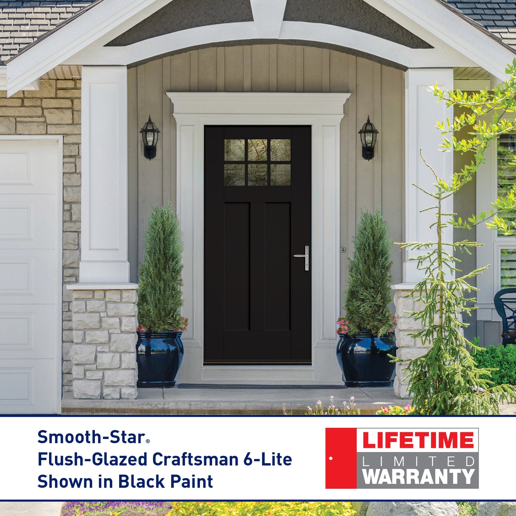Upgrade your entry with this paint-ready, energy-efficient Craftsman door—order today for a fast, prehung install.