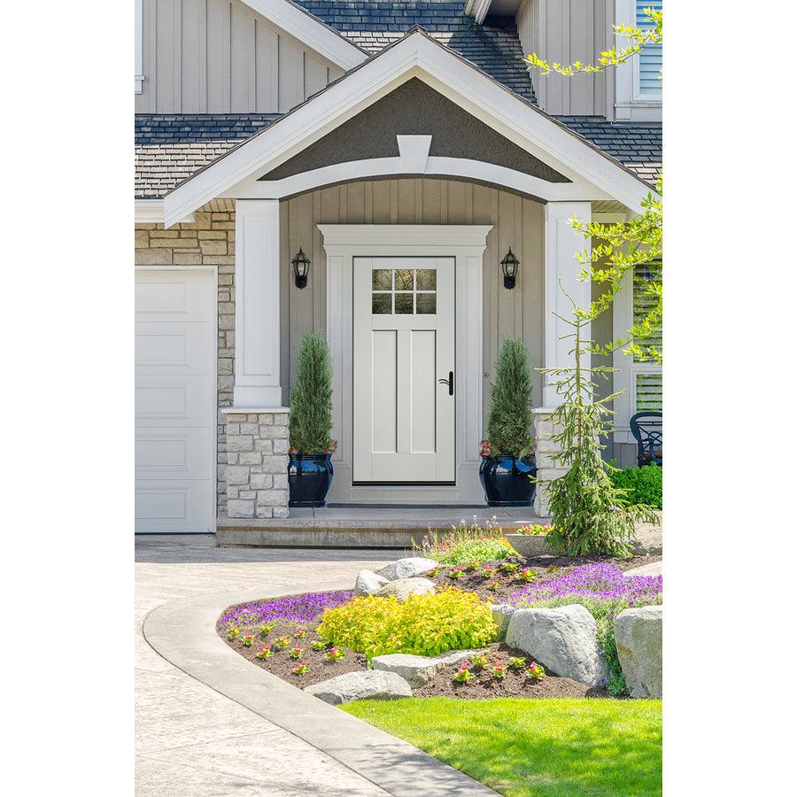 This entry door introduces timeless Craftsman geometry with a modern, flush‑glazed silhouette, creating a crisp, tailored welcome. The smooth, paint‑ready fiberglass invites bold color or a soft neutral for effortless curb appeal. Style it with streamlined hardware in brushed nickel and layered greenery for a balanced façade. A refined essential, it elevates everyday living with durability and grace.