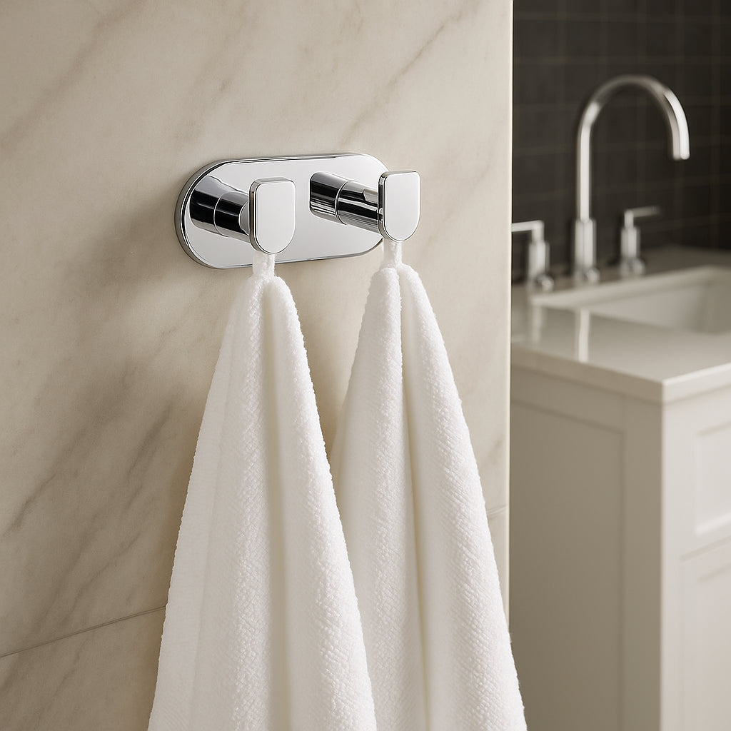 The KOHLER Composed Double Hook is a polished chrome towel hook designed for modern bathrooms. Its premium metal construction ensures durability, while its minimalist design complements the Composed collection.