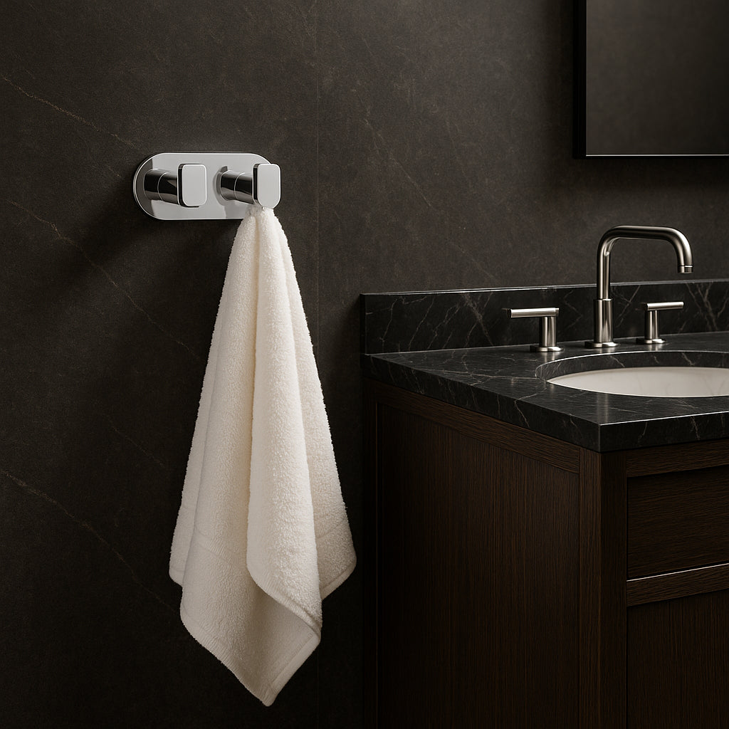 Enhance your bathroom with the KOHLER Composed Double Hook, a stylish and durable solution for towel storage.