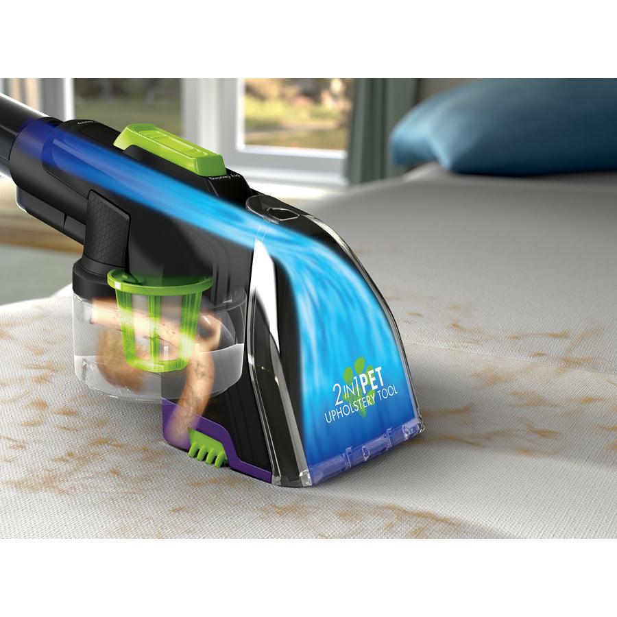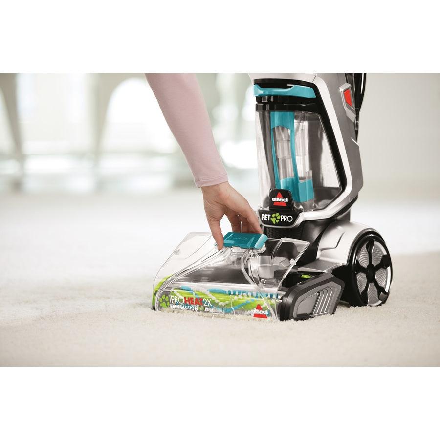 BISSELL carpet shampooer from the ProHeat 2X revolution pet pro provides professional pet mess cleanup This 2-in-1 pet upholstery tool removes pet hair, stains and odor from your upholstery CleanShot® attacks spots and stains with integrated CleanShot® pretreater Includes Pet Urine Eliminator + Oxy formula that removes pet urine stains and odors and Pet Antibacterial cleaning formula to control odor-causing bacteria The 5-year limited warranty gives you peace of mind Adjustable cleaning modes include deep clean mode to remove deep down dirt and express clean mode for a quick clean that dries in about an hour Unbeatable cleaning vs the traditional rental machine The 25-ft power cord allows for extended reach without having to unplug Lightweight 20-lb design and low-profile foot offer easy maneuverability and cleaning around and under furniture