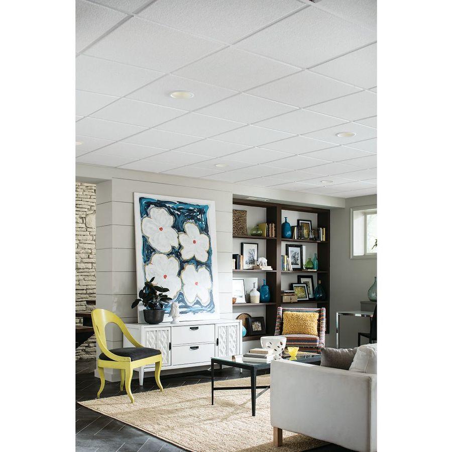Durable mineral-fiber panels with a smooth, fine non-directional finish for 15/16-in drop ceilings. Each 24-in x 24-in tile delivers reliable sound control and a clean white look for basements, offices, and living areas.