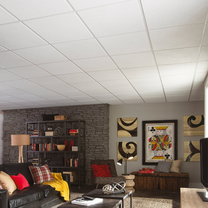Classic Fine Textured 24x24 Acoustic Ceiling Tiles, 12-Pack