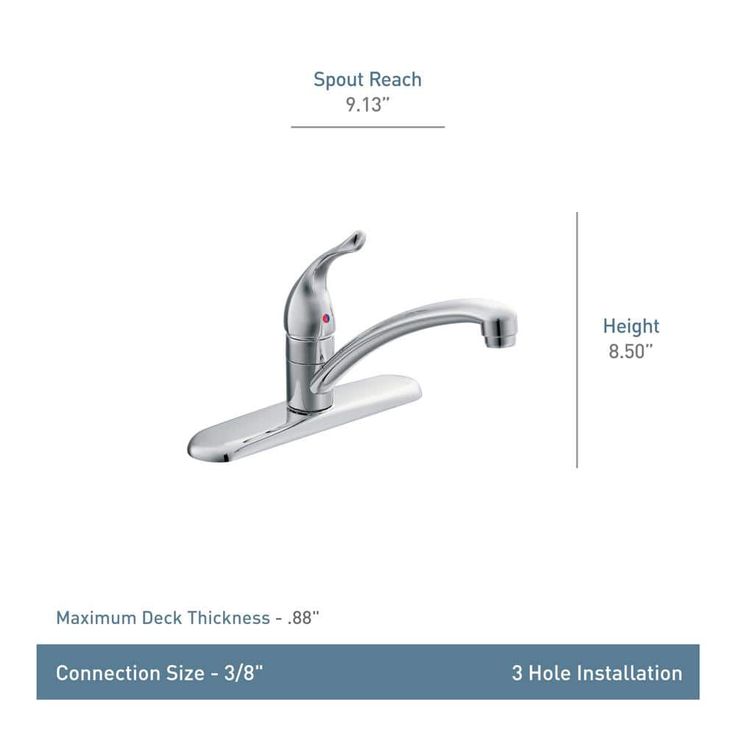 Defined by attractive simplicity, the Chateau Standard Kitchen Faucet offers timeless appeal with the reliable functionality you expect from MOEN. Its sleek, curved profile and extended 9-1/2 in. spout reach combined with convenient, single-handle operation translate into a user-friendly design that's easy to install. The bright, resilient chrome finish offers classic appeal that coordinates with any kitchen's style.