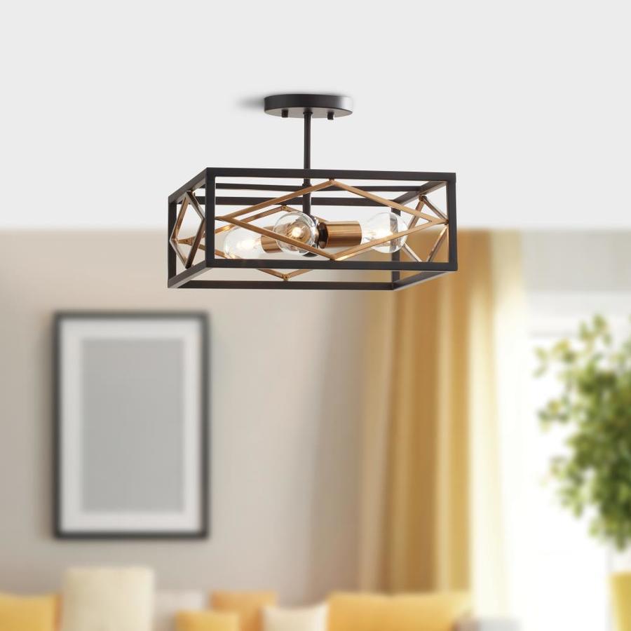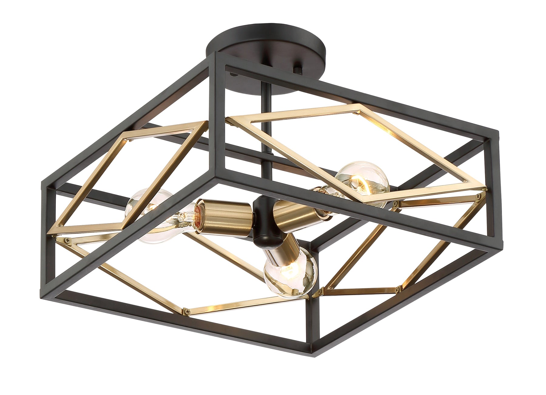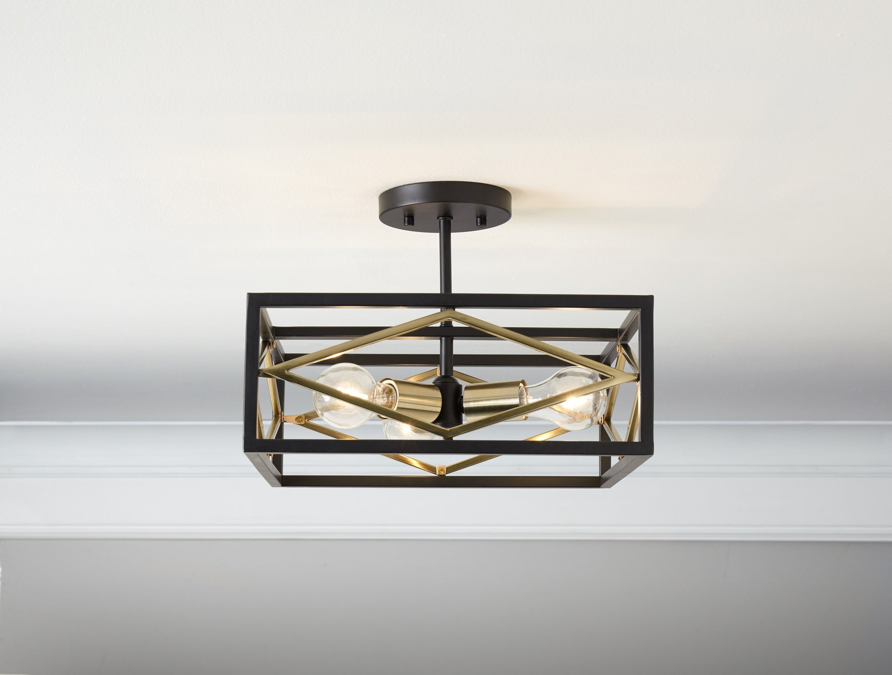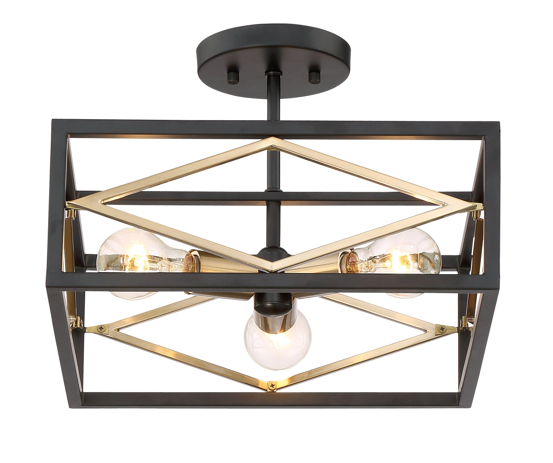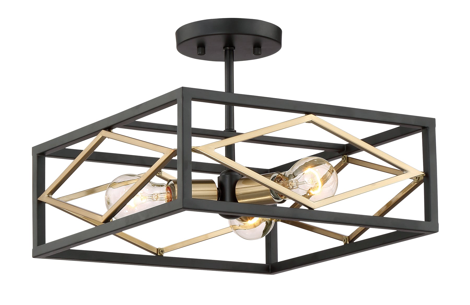 Platform 14-in Black/Gold 3-Light Semi-Flush Mount