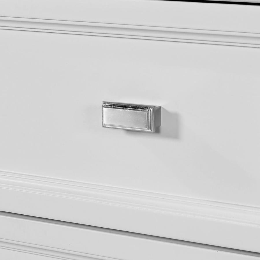 Two U-shaped drawers feature soft-close glides for easy access to toiletries and cosmetics