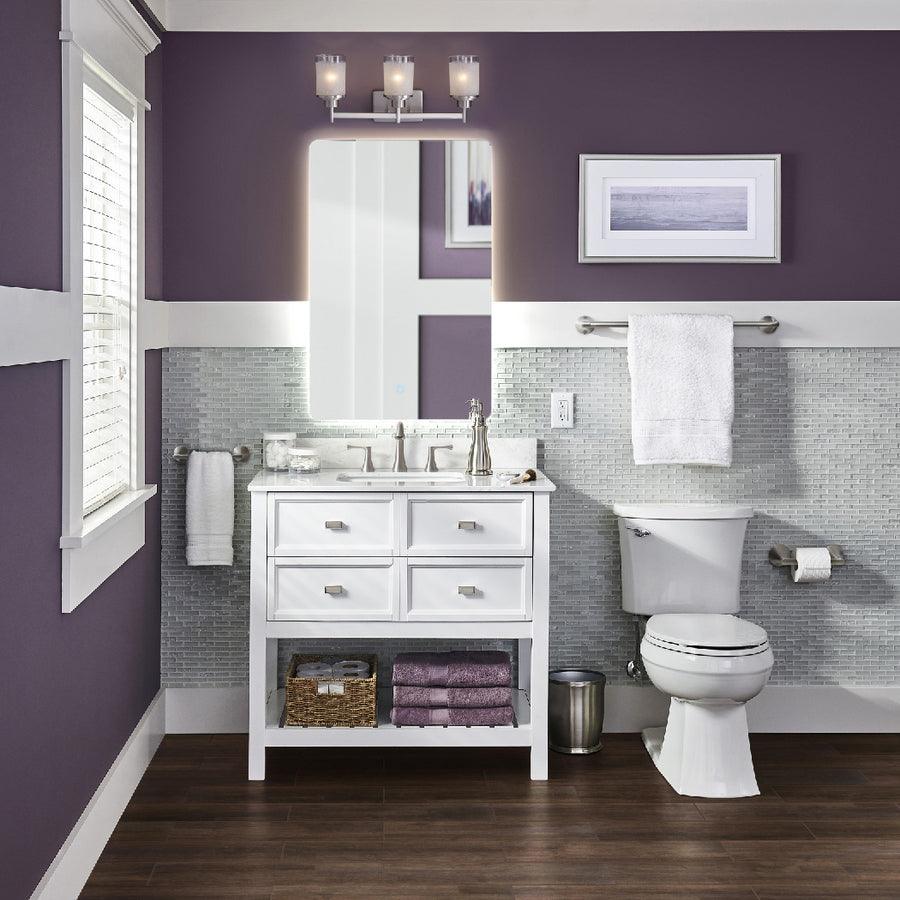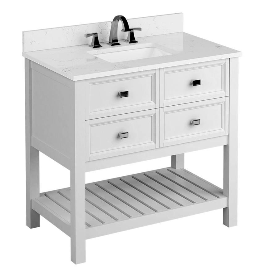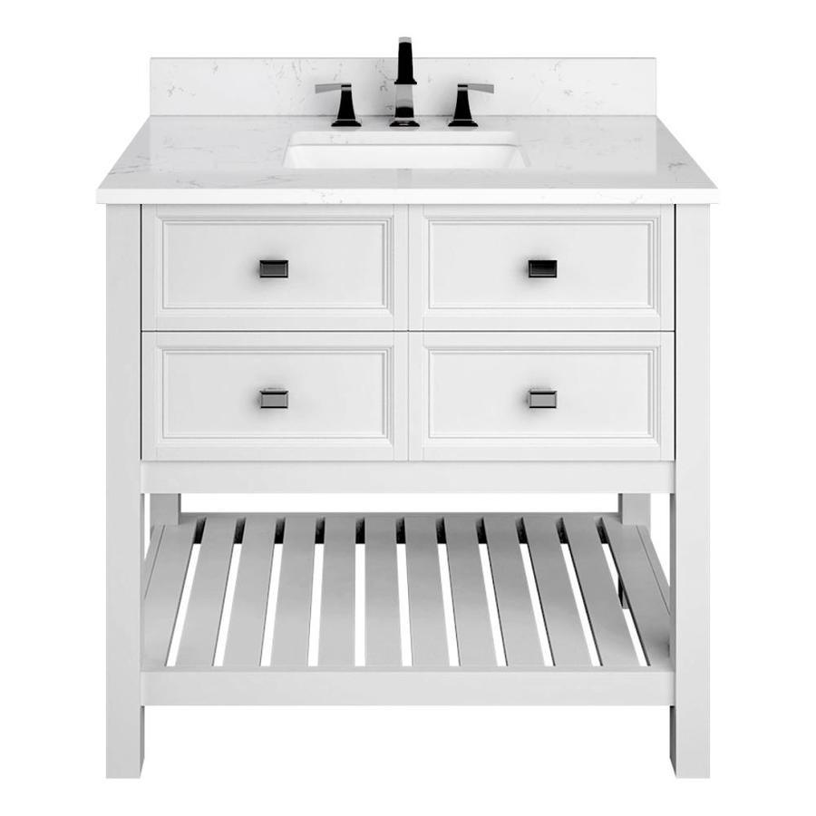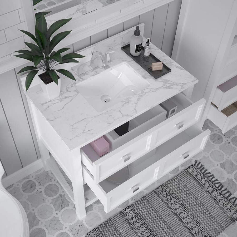 Engineered Carrara marble top with 4-in backsplash