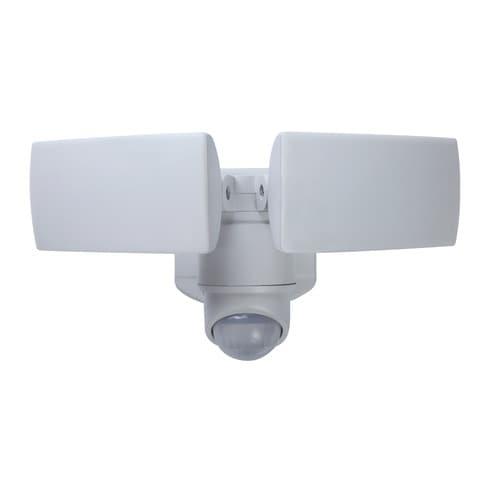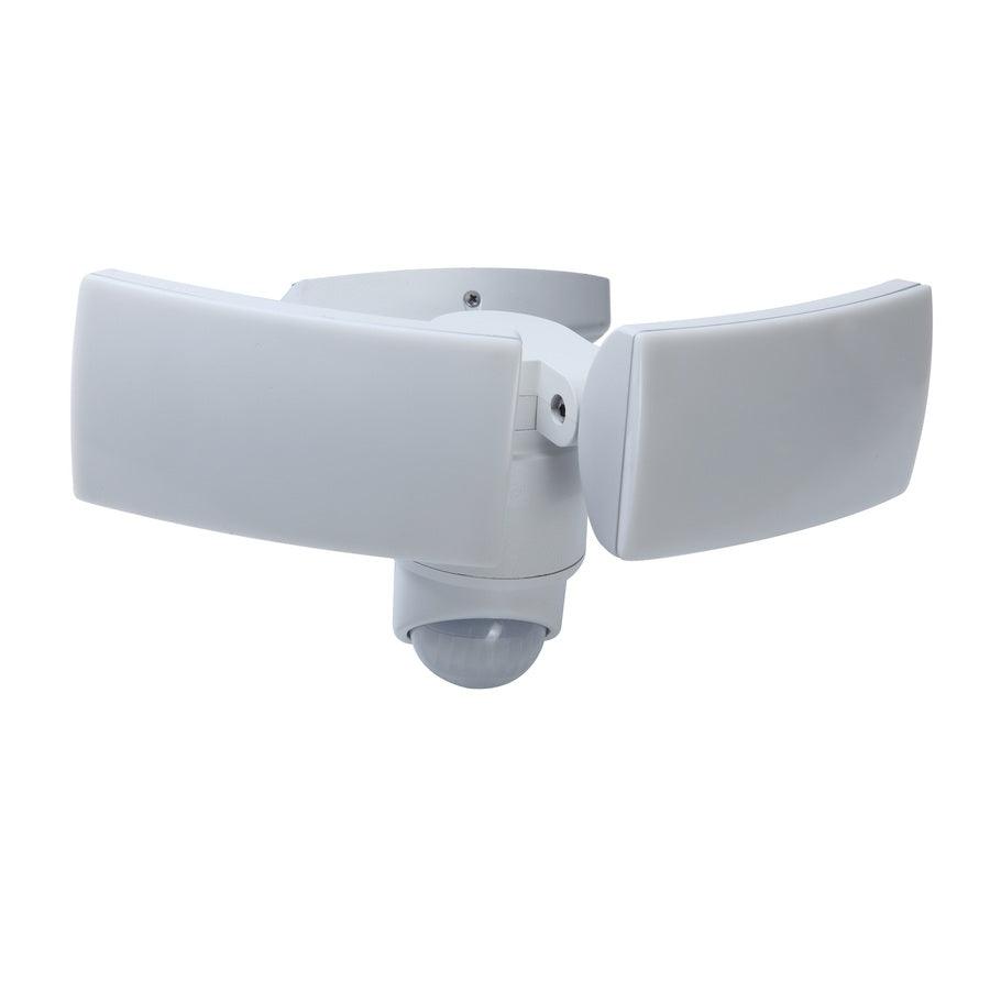 180 ° Outdoor motion-sensing LED security floodlight is the energy-efficient, low-maintenance lighting solution to protect most spaces around your home, or business Unique curve design provides seamless light coverage 180 degree adjustable motion detection with up to a 60-ft range 2 independent adjustable heads direct light where it is required Utilizes efficient LED technology producing 1100 lumens at a 5000K color temperature rated at 25,000 hours providing brighter light than traditional halogen or metal halide light sources Install quickly and easily with DIY friendly 3 easy steps to connect Wall or eave mount Suitable for use in wet locations ETL listed mark is determined to have met the minimum requirements of prescribed product safety standards