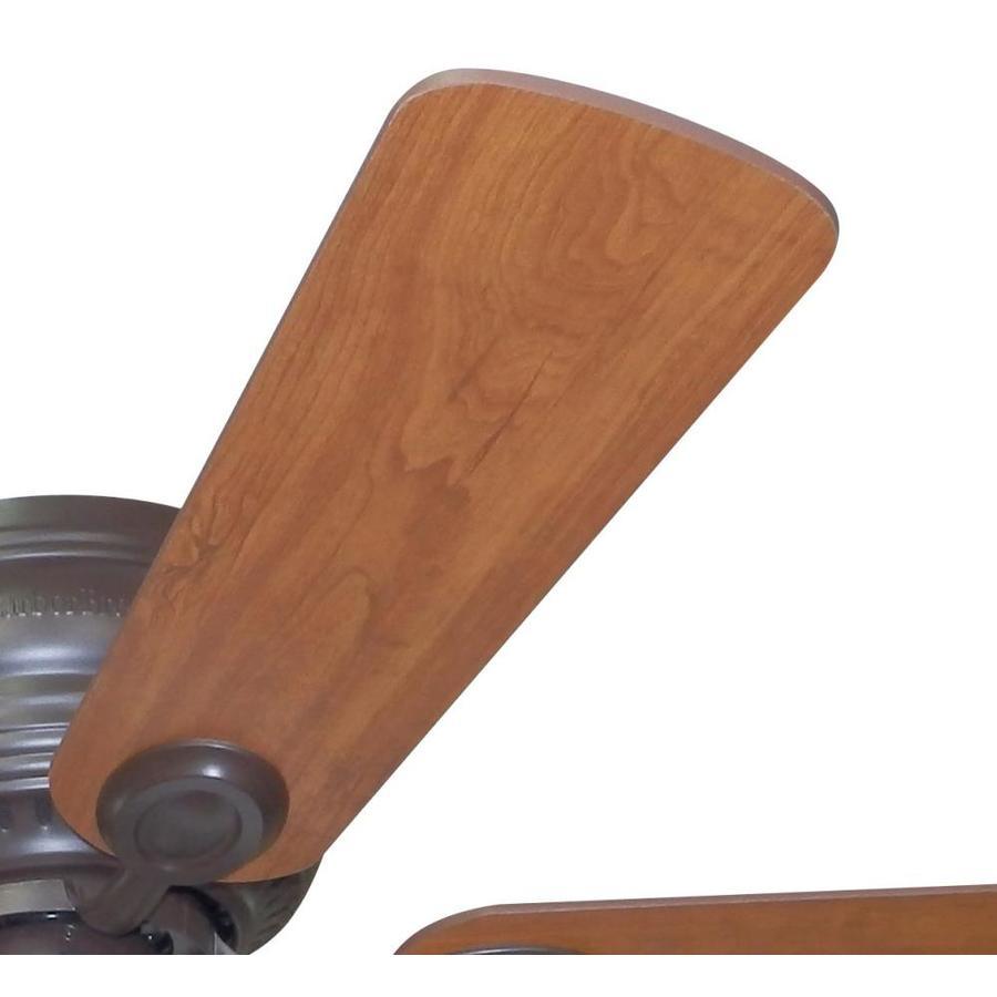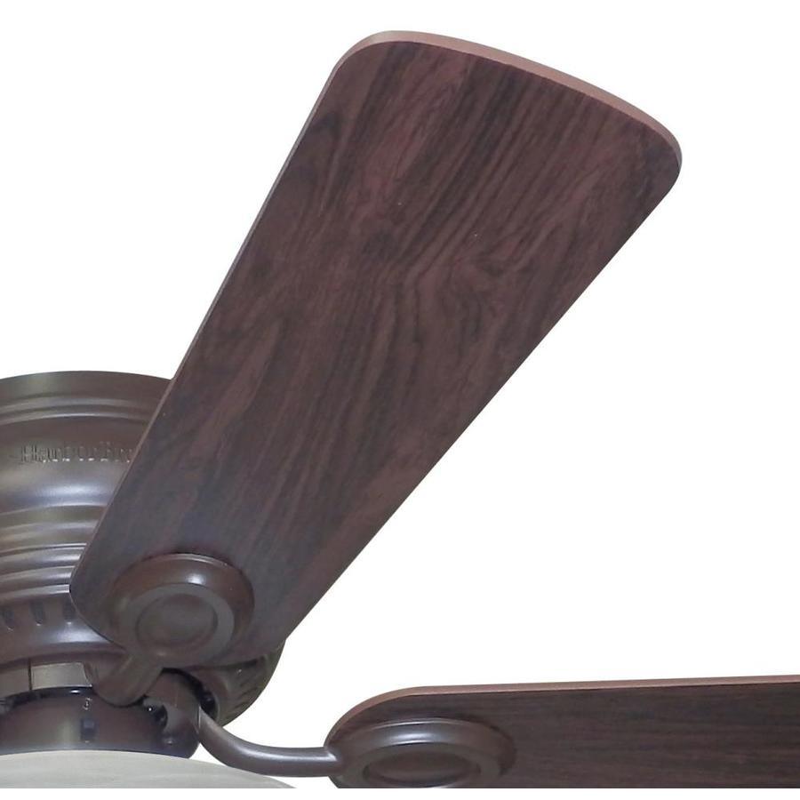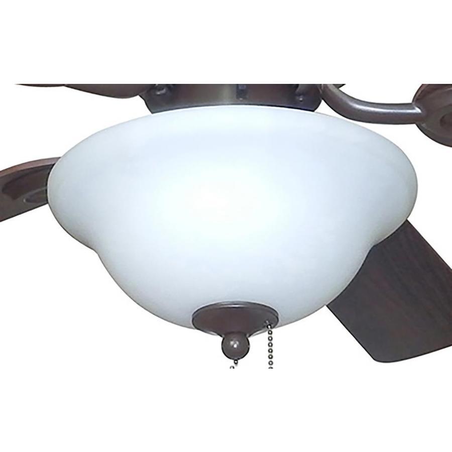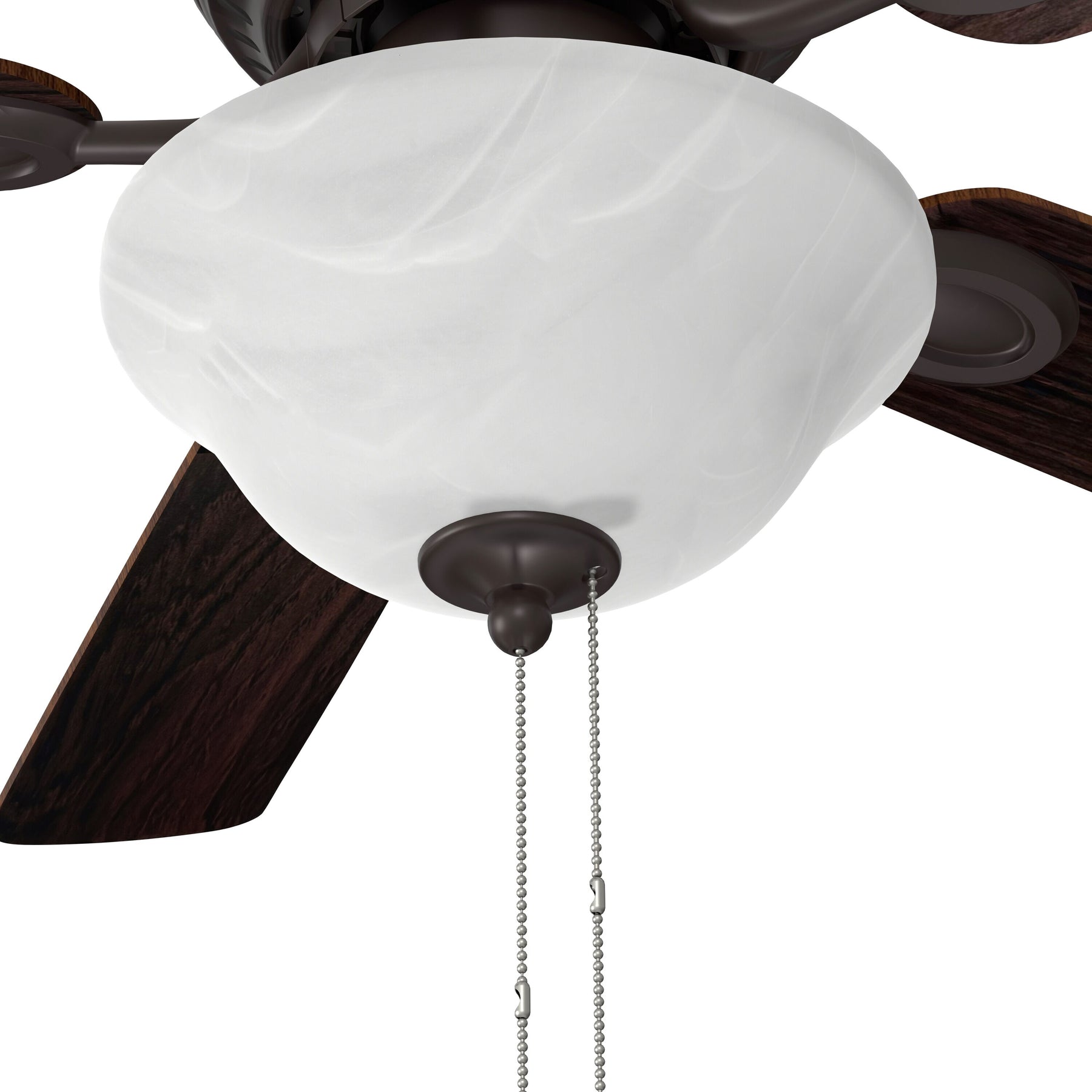 Style Flexibility: Reversible Java/Cinnamon blades and alabaster glass shade in a bronze housing.