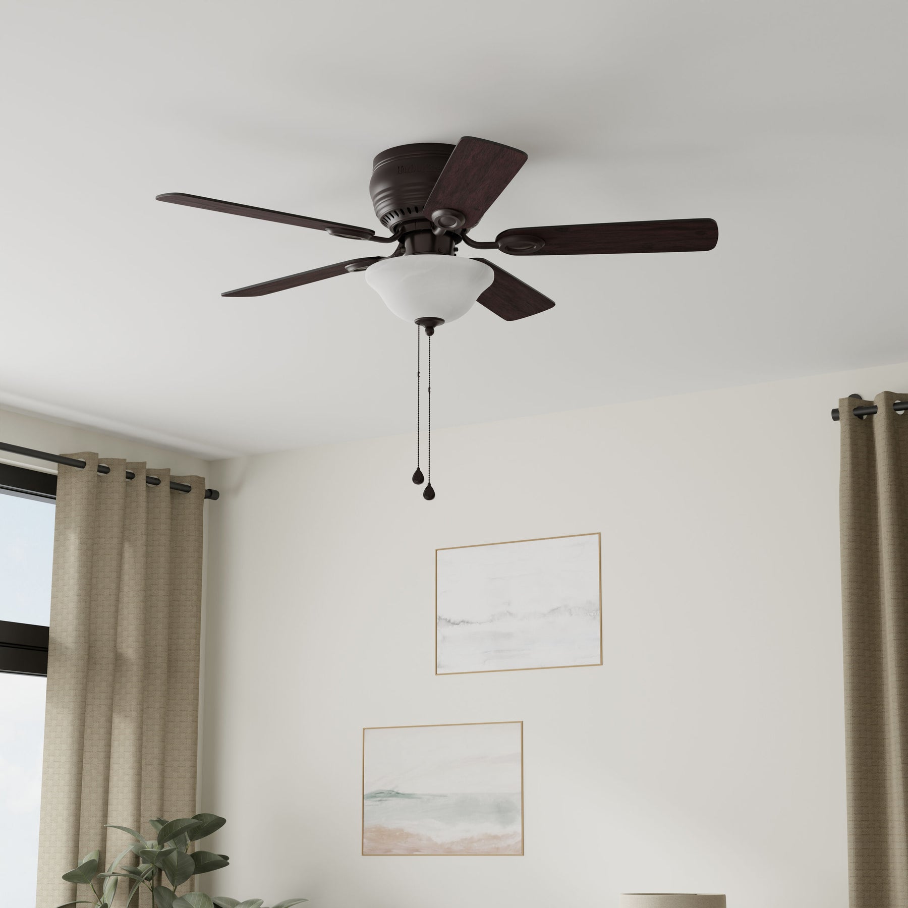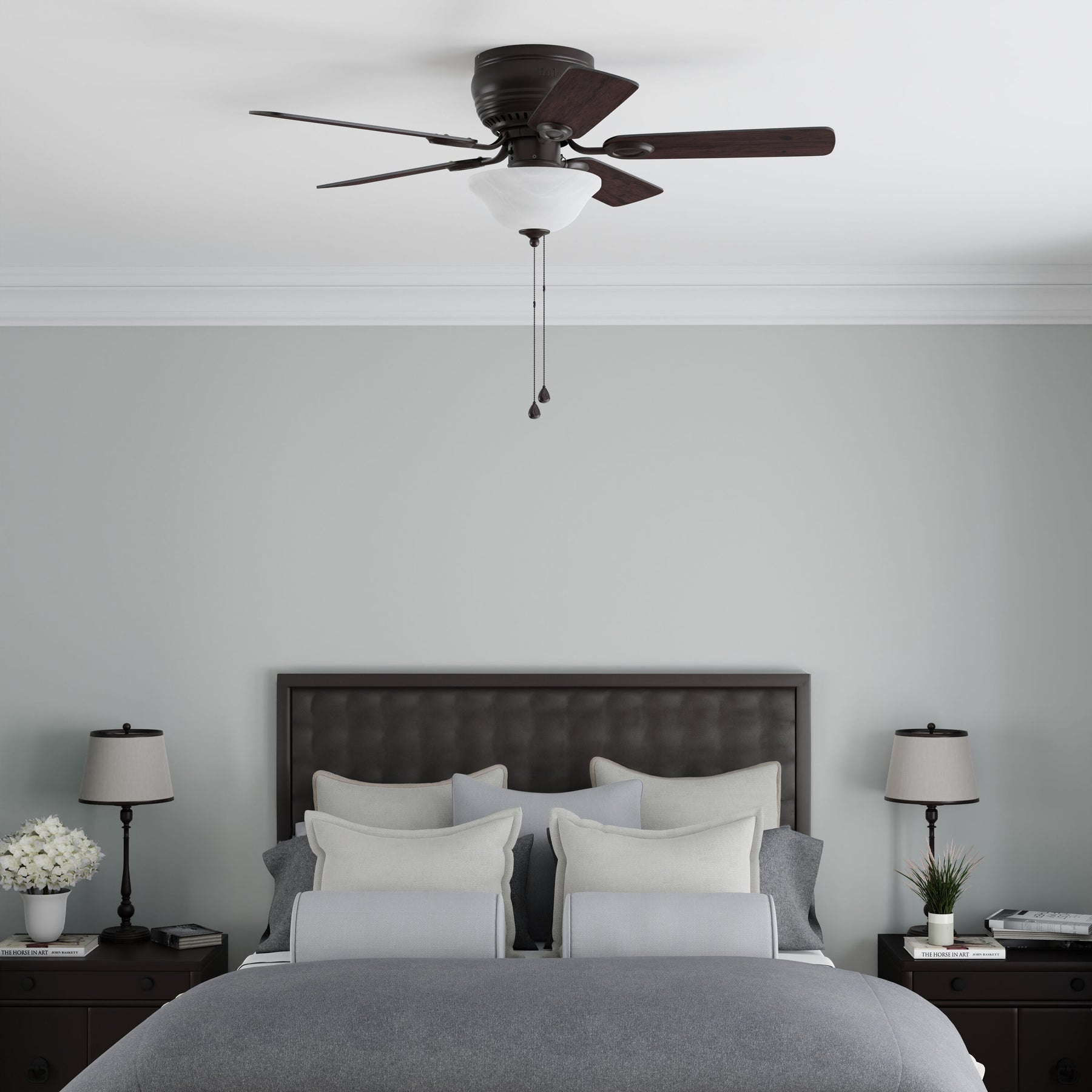 A compact, low-profile ceiling fan designed for small rooms, the Harbor Breeze Mayfield features a warm bronze finish, reversible Java/Cinnamon blades, and an alabaster glass bowl light. The flush-mount design is ideal for low ceilings, while the reversible AC motor delivers year-round comfort with efficient LED lighting.