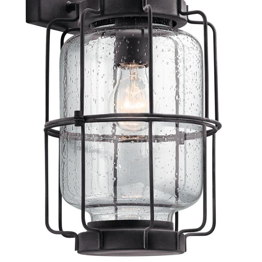 • Industrial Style: Weathered Zinc finish with protective metal cage and clear seeded glass for a classic lantern look