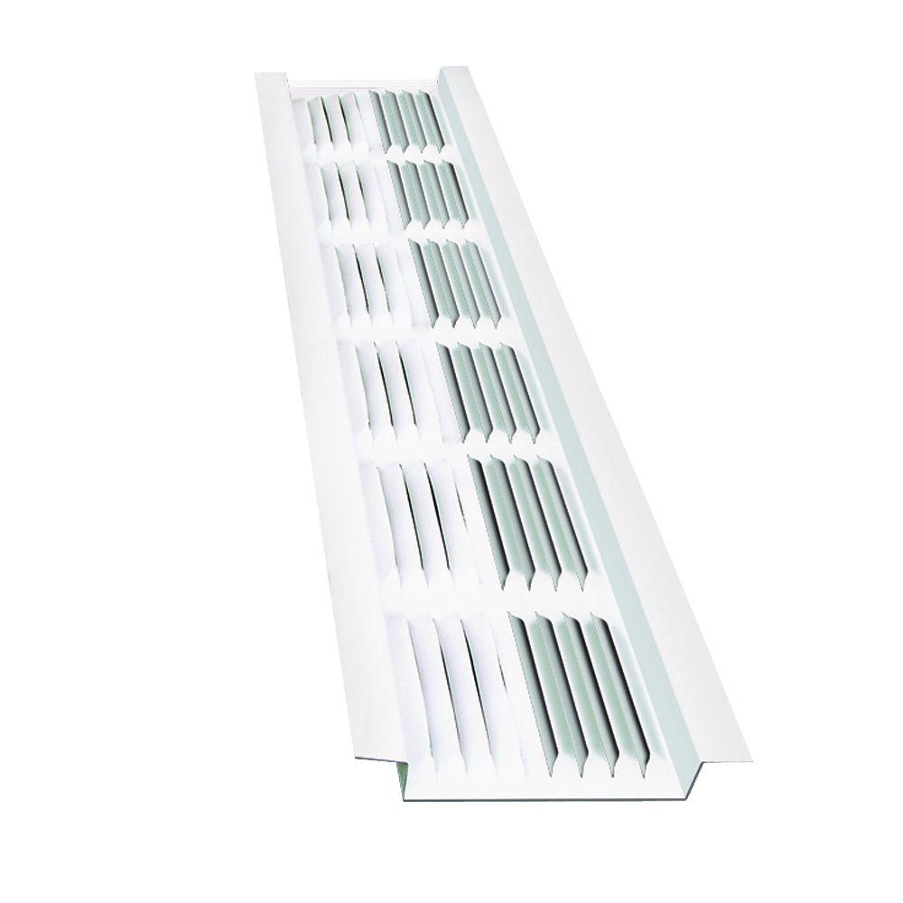 The GAF Master Flow 8 ft. Aluminum Under Eave Soffit Vent is an easy-to-install option for providing critical intake ventilation at the soffit or under-eave portion of the roof. Its convenient, one-piece louvered construction eliminates the need for a screen. Each vent offers a full 68 sq. in. of net free ventilating area (NFA).