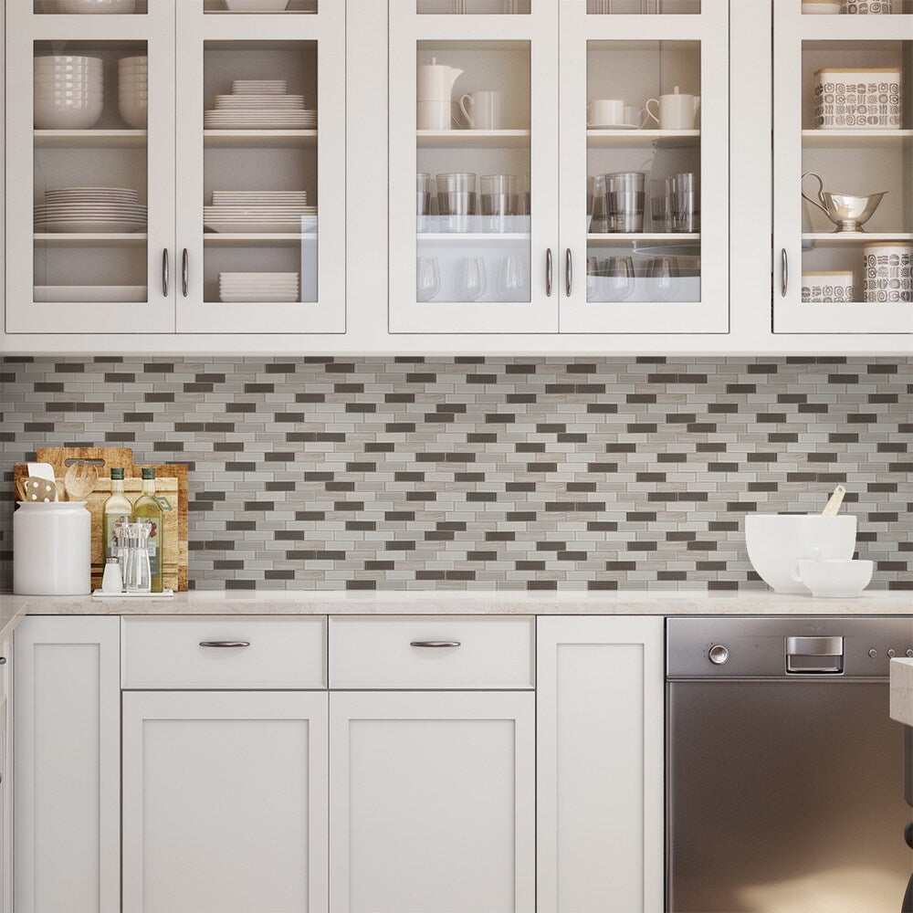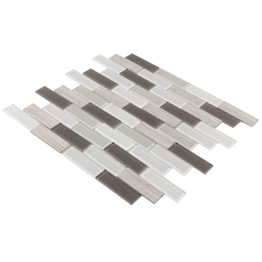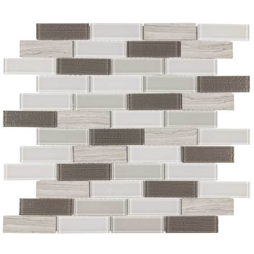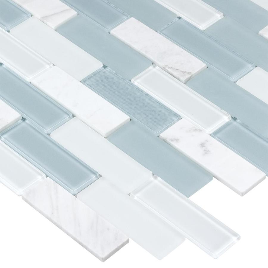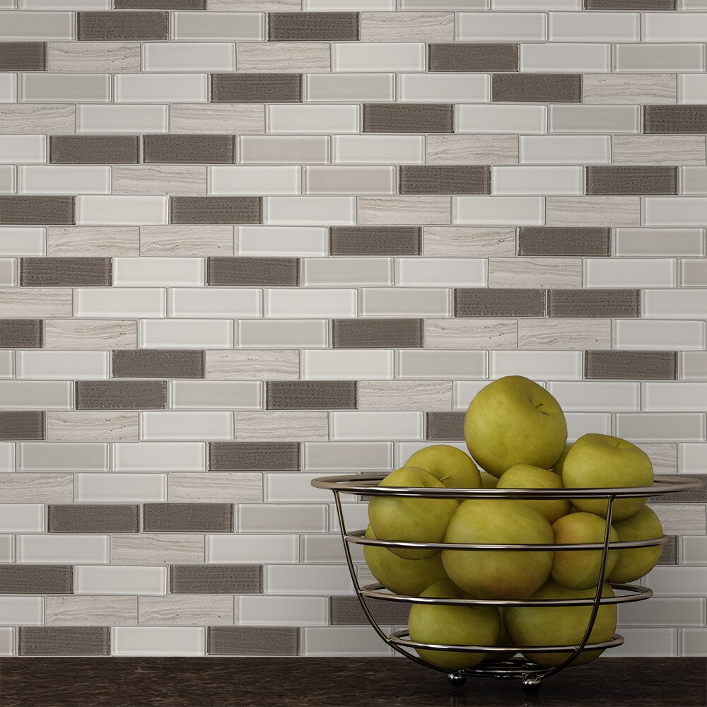 A modern mosaic of glossy glass and travertine stone, this 12-in x 12-in sheet delivers a sleek linear look for walls and backsplashes. Impervious and water-resistant, it’s designed for indoor or outdoor installations using thinset mortar.