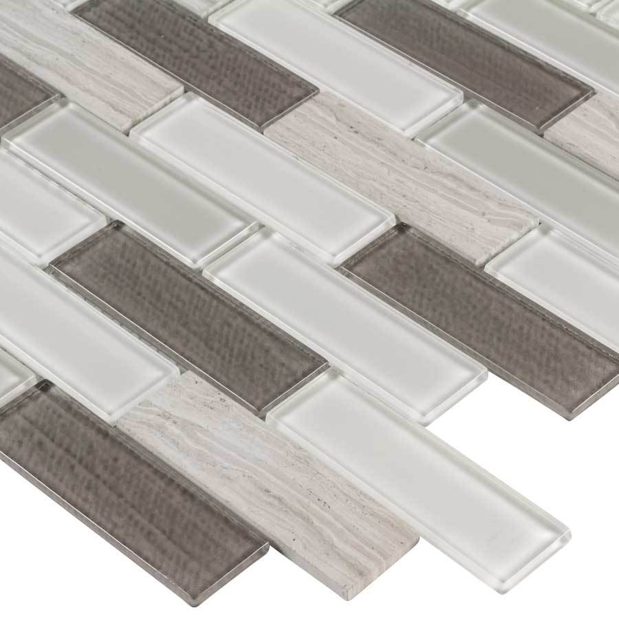 Highlight Linear Blend Glass/Stone Mosaic Wall Tile, 12" x 12"