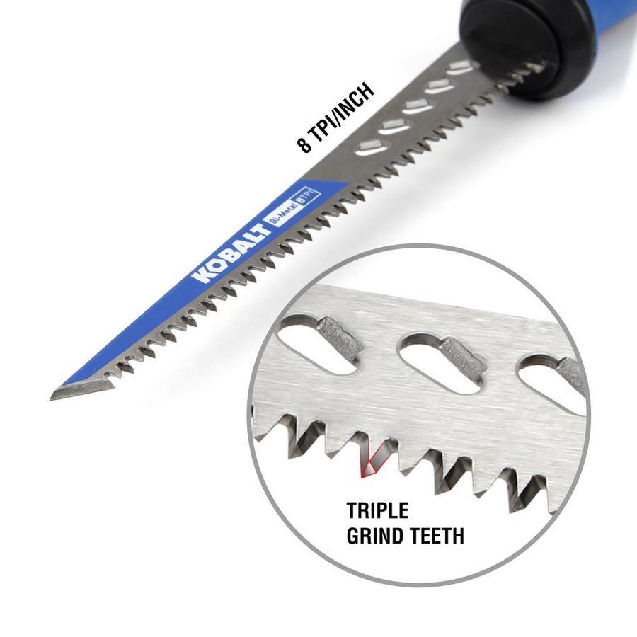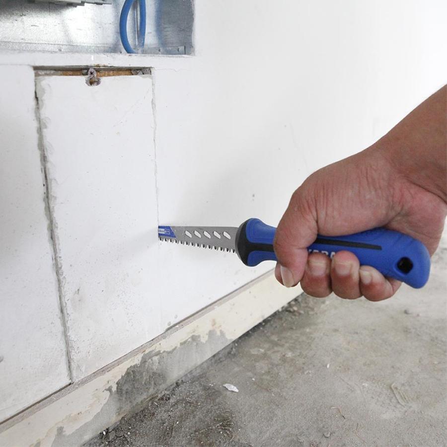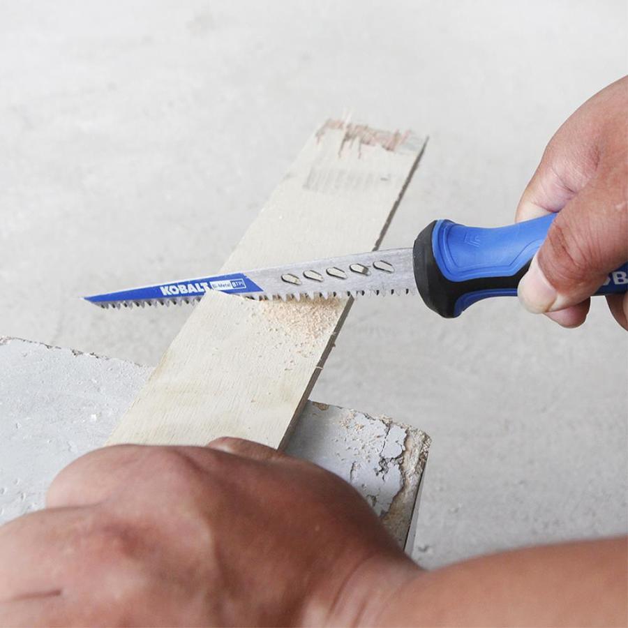 Super-sharp triple-grind teeth for fast cutting in drywall,wood or plastic Heavy-duty rubber grip handle