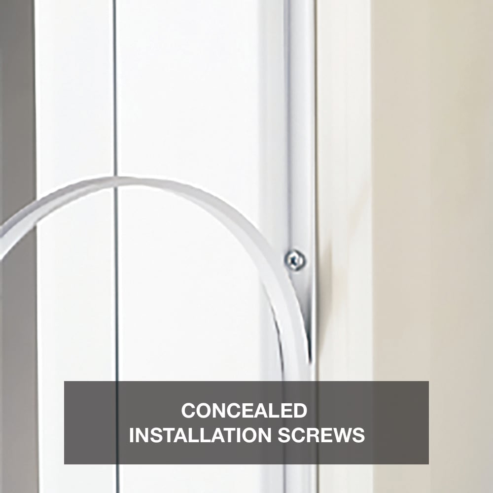 Bring light and style to your entry with the Pella Select full-view storm door. Its premium aluminum frame with decorative arched bevel glass elevates curb appeal while dual weatherstripping and an overlapping edge help block drafts. Universal hinging, Express Install, and a dependable two-closer system with One-Touch hold-open make everyday use simple.
