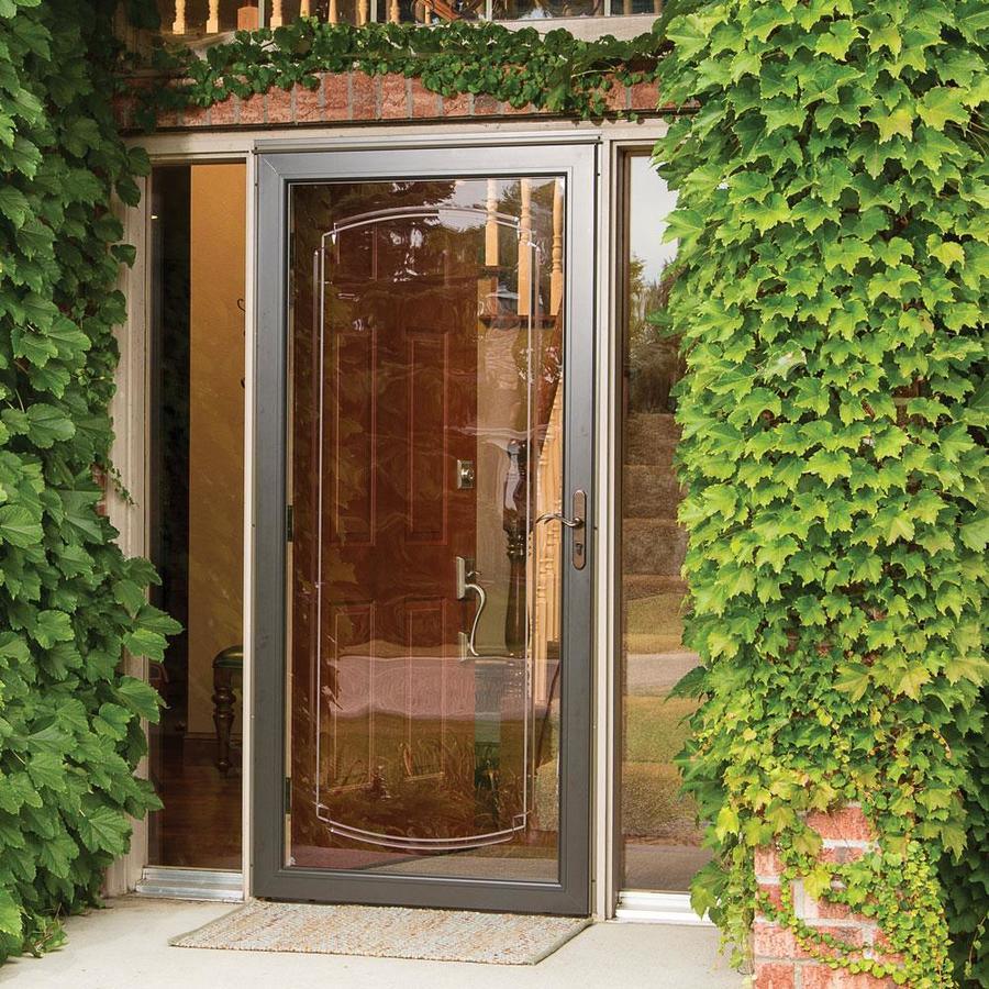 This full-view storm door frames your threshold in a ribbon of light, the arched bevel detailing lending a tailored, architectural grace. Its slim aluminum profile feels crisp and modern, allowing your primary door to shine while adding a note of refinement. Pair it with a satin nickel handle for a cool, gallery-like entry or choose bronze to warm a classic facade. It’s an elegant essential that elevates everyday arrivals into a moment of luxury.