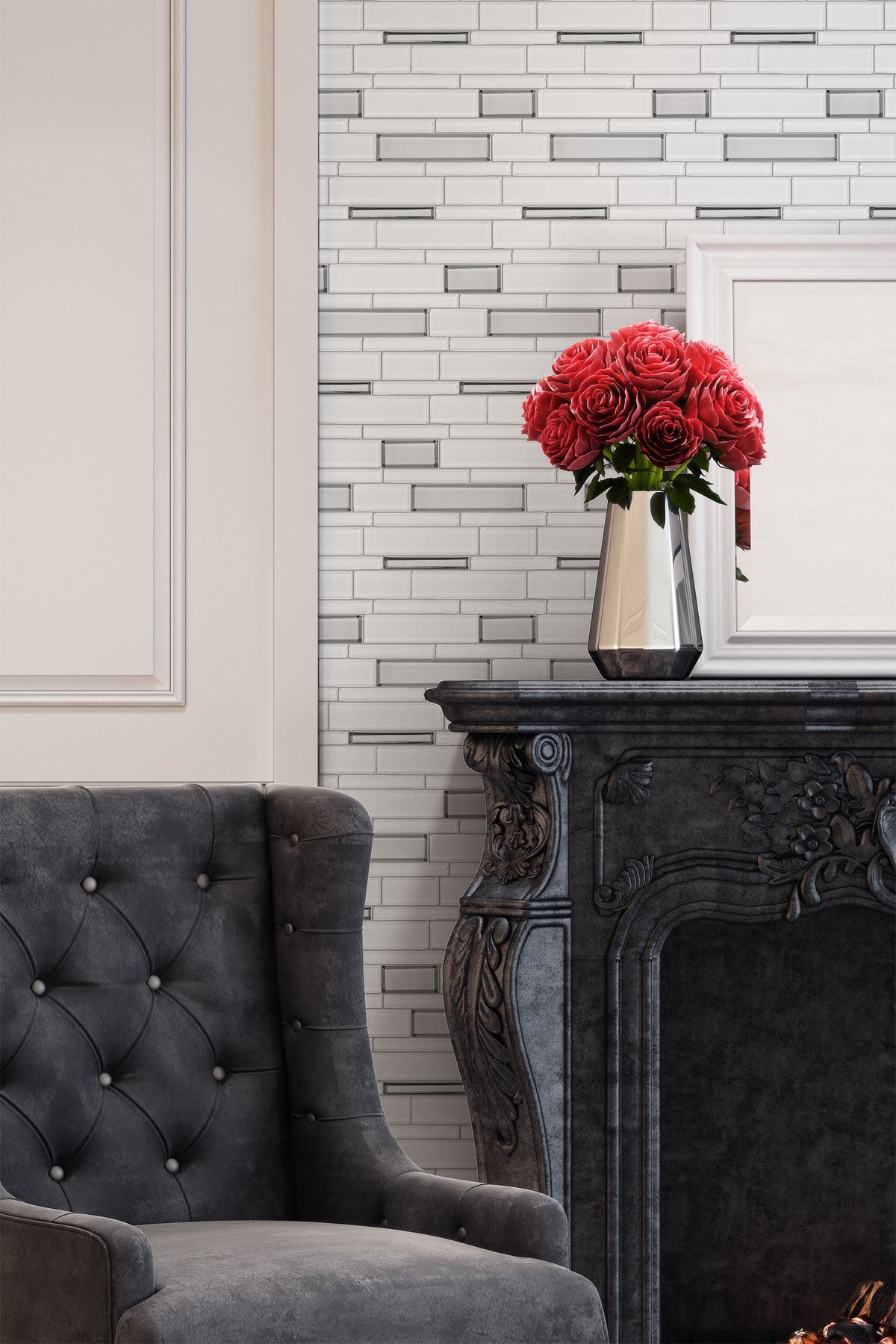 This mosaic’s mirrored inlays catch the light like jewelry, instantly lifting a space with crisp, modern sparkle. The elongated linear pattern elongates walls, creating a sleek, tailored backdrop. Pair it with honed marble and brushed nickel for a refined contrast, or run it from counter to ceiling for a couture moment. It’s a chic essential for turning everyday rooms into luminous sanctuaries.