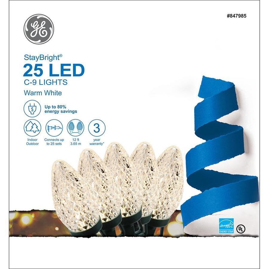 25-Count GE StayBright LED warm white C9 Christmas string lights